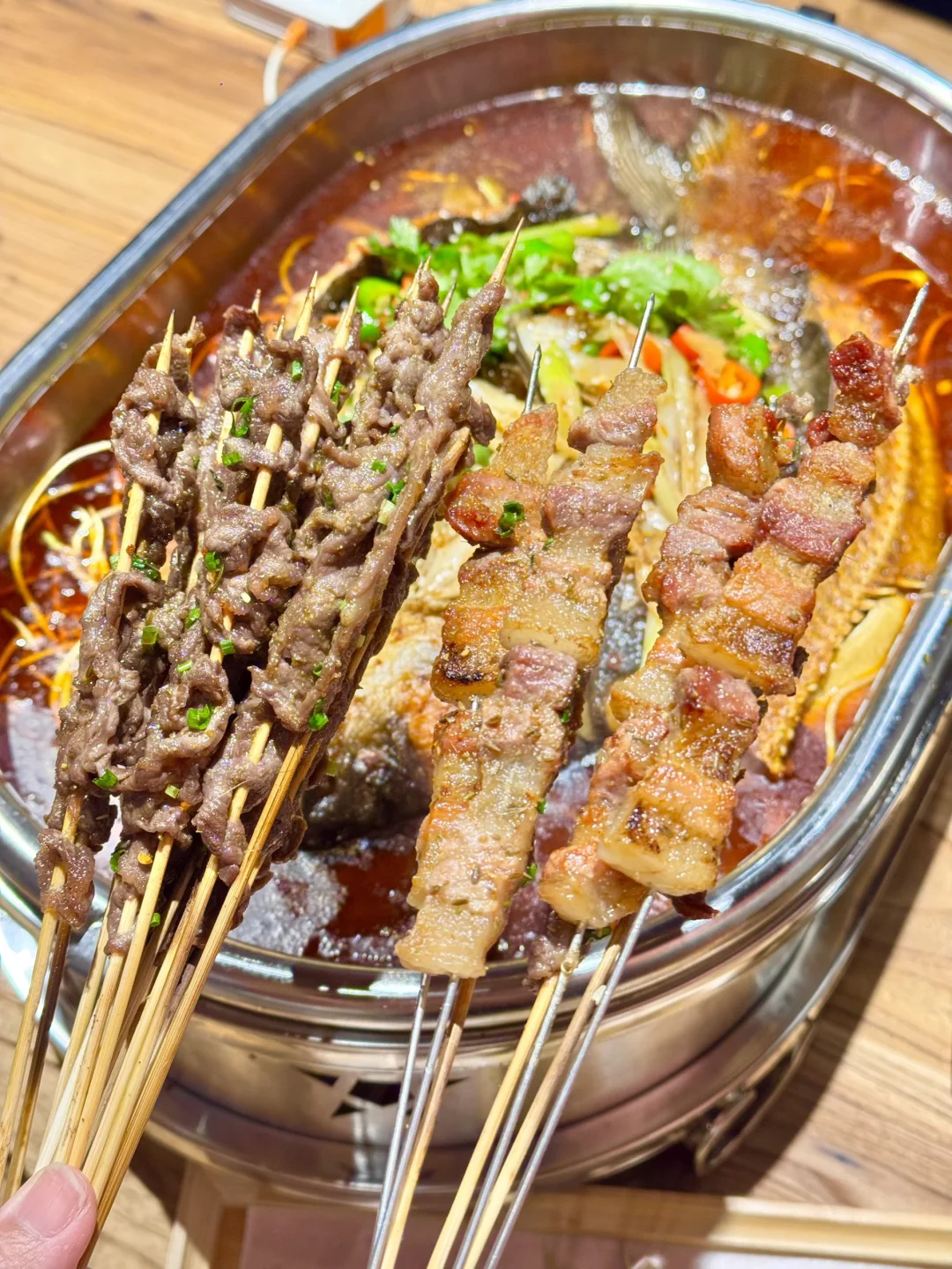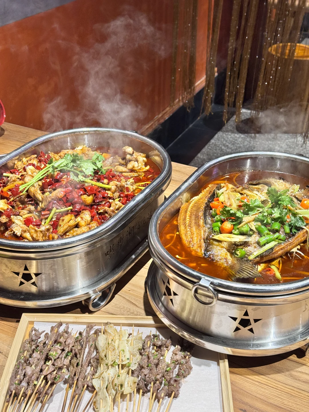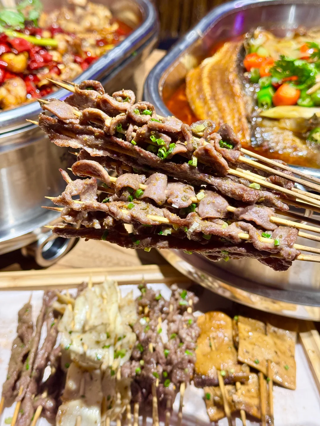 在观音山老街的旧厂房里居然藏着这么一家宝藏烧烤大排档 这个天吹着晚风 一边撸串一边看苏超真的氛围感拉满⚽ 点了香辣烤清江鱼和招牌牛蛙 蛙肉鲜嫩 里面还有多种好吃的配菜 他家的烤鱼也是活鱼现烤 和外面的预制烤鱼口感完全不同 他家现烤的烤串也很不错 牛肉鲜嫩多汁 特别推荐他家的烤黑猪五花肉 烤得滋滋冒油 一口脆香 爱吃烤串和烤鱼的选他家就对了!