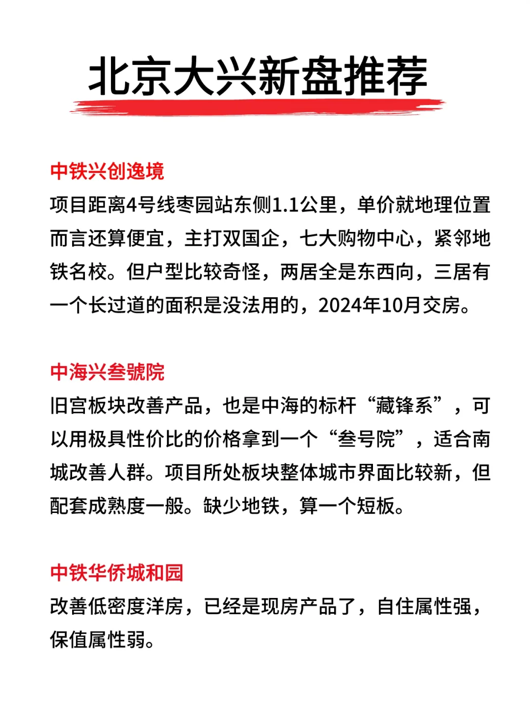 改善定位,已经进入现房销售阶段;总价不低,对应的预算要求700-1200万,南城和亦庄竞品太多了。