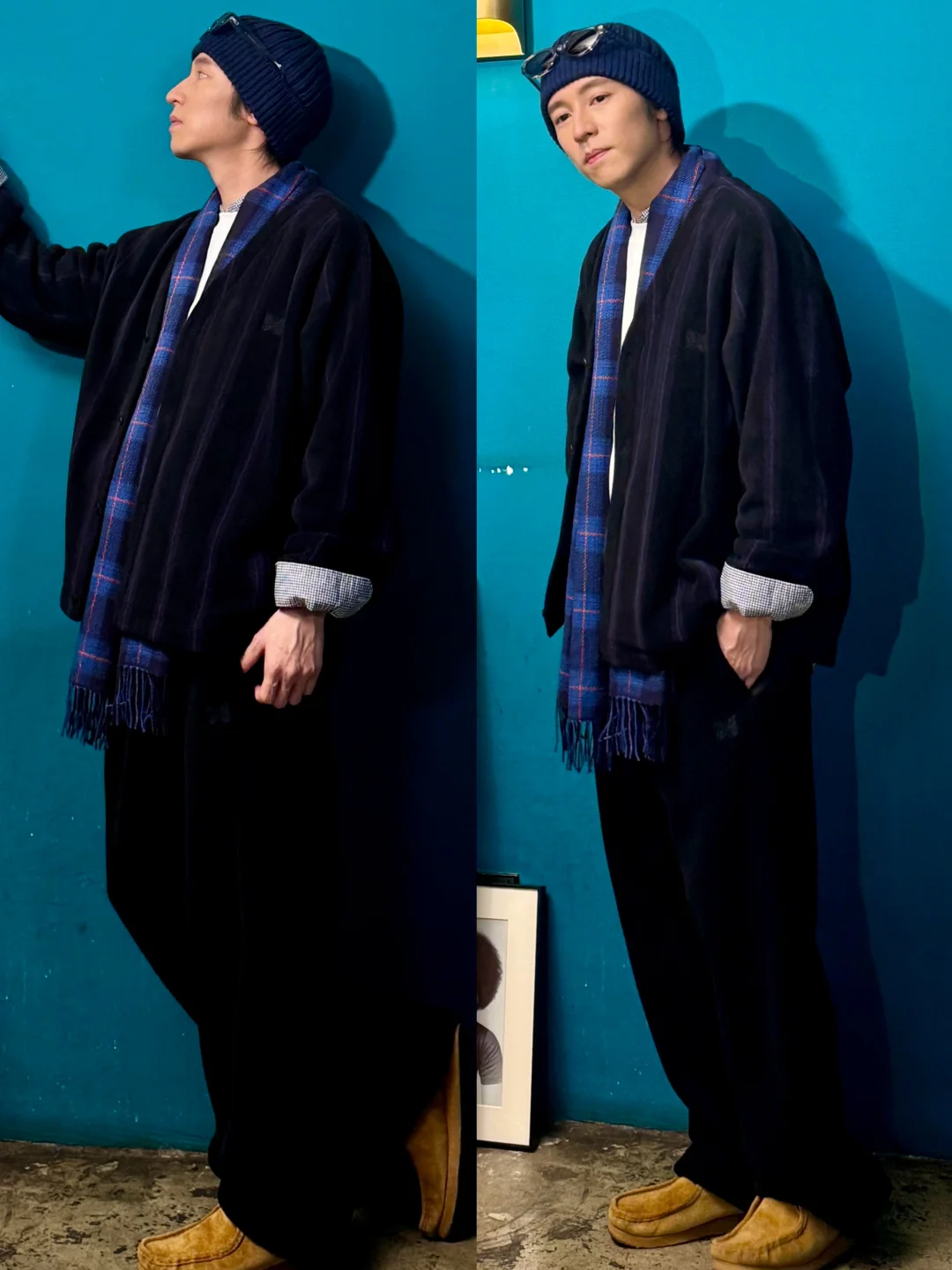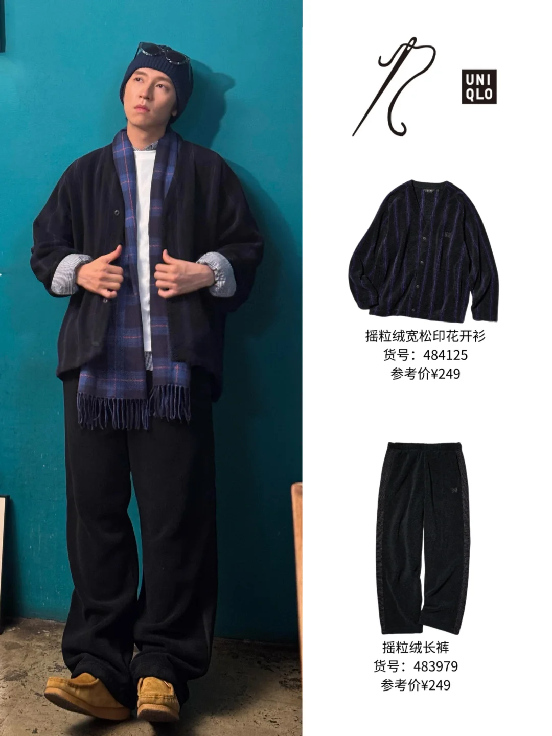 孙阳又来更新了,不愧是NEEDLES忠实粉丝,天气一变凉就穿上了和优衣库联名的摇粒绒,还得是潮星孙阳,是真的会搭啊,条纹印花摇粒绒内搭白T与摇粒绒长裤,又配了件蓝色格纹围巾来呼应外套上的条纹,时髦与保暖兼具,小细节感拉满! 第二套有着NEEDLES标志性紫色的摇粒绒夹克搭配灰色摇粒绒长裤,松弛又潮范儿拉满,没想到孙阳在穿搭上也有一手!又是被阳哥种草的一天!