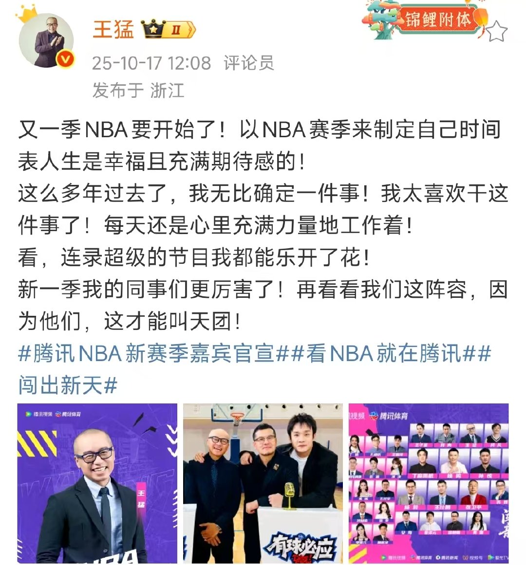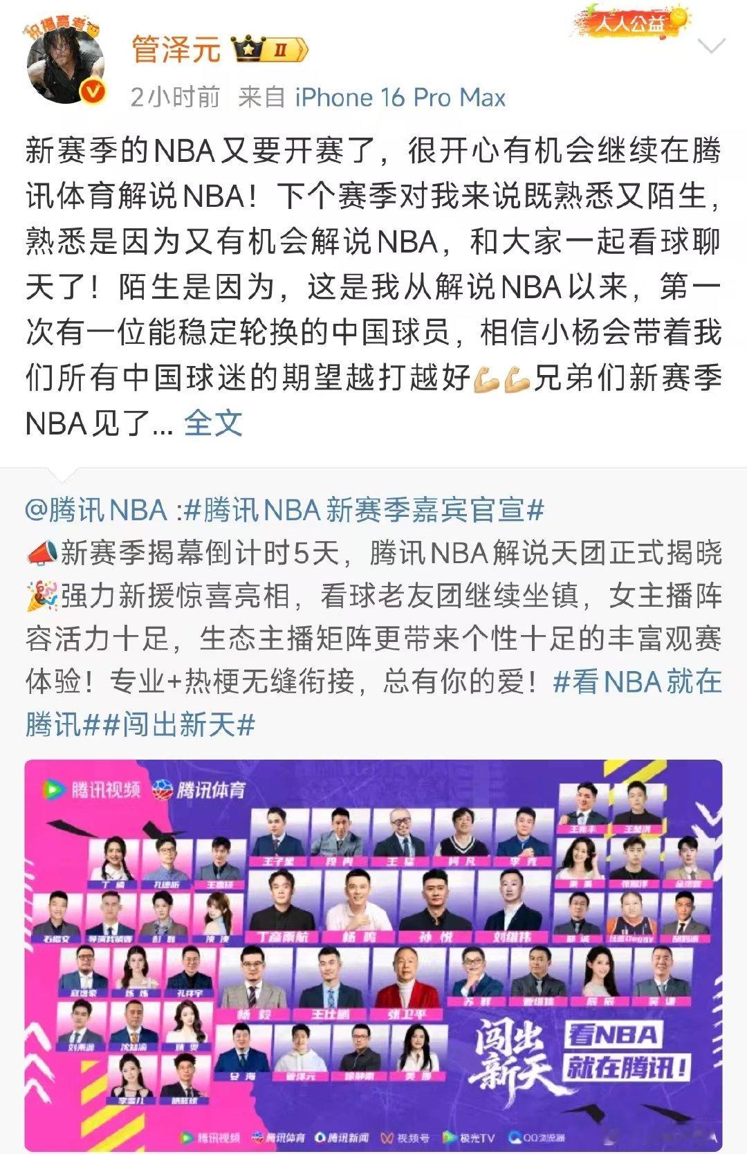 NBA解说阵容NBA新赛季号角吹响!腾讯体育官宣的解说阵容堪称“天花板”级别:既