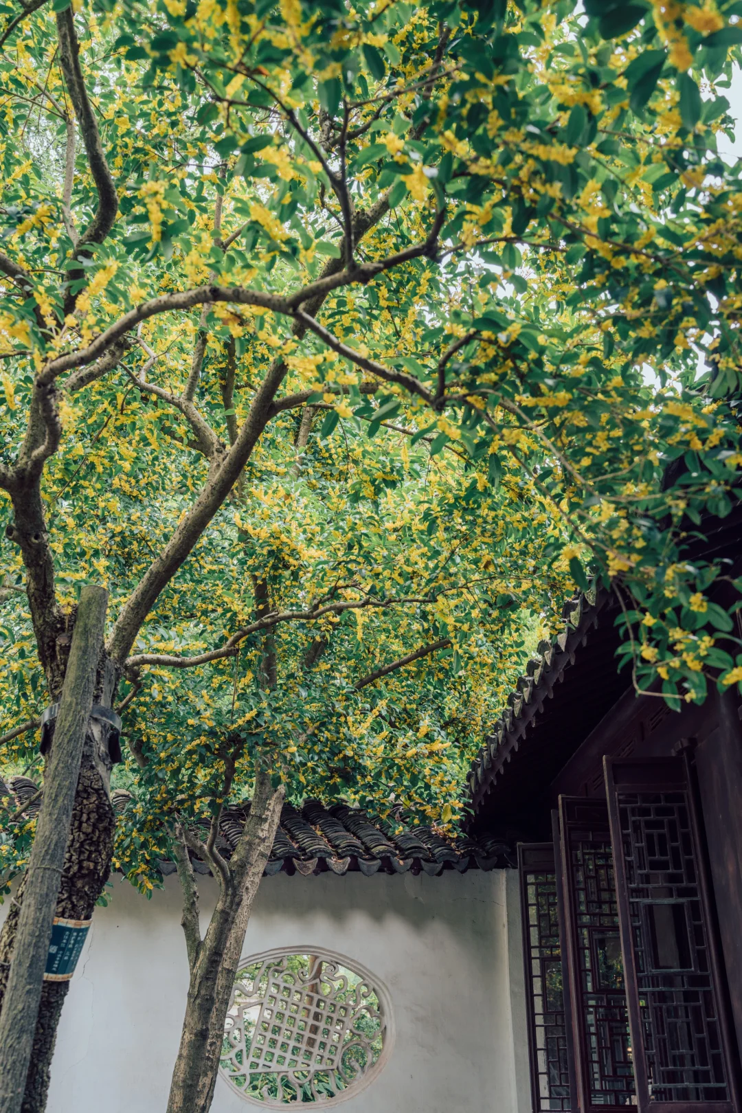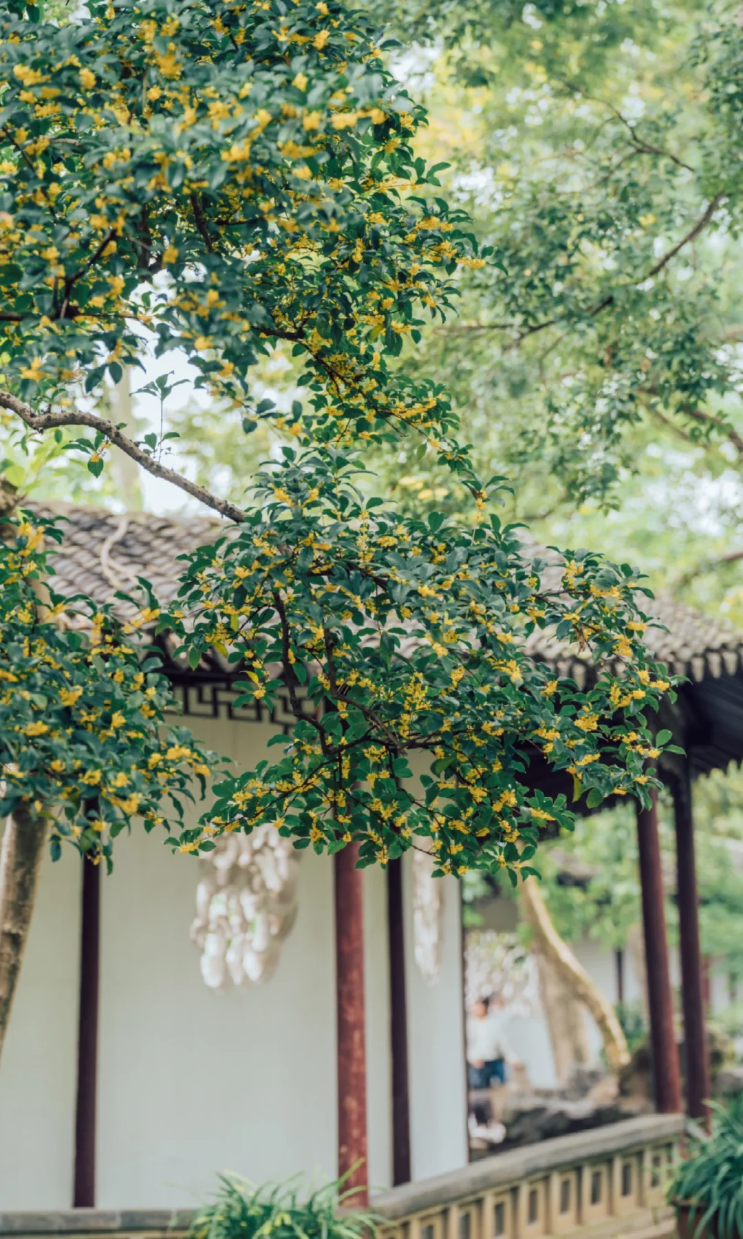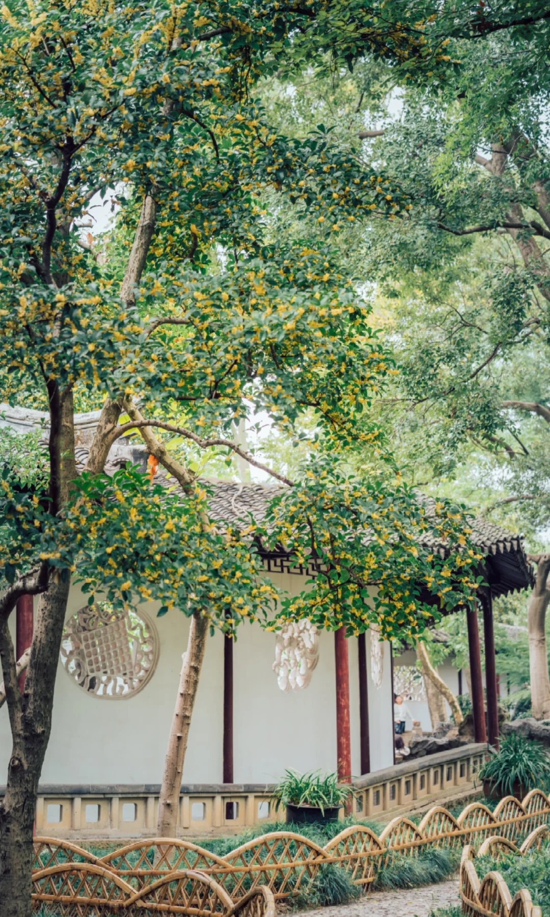 沧浪亭的108扇花窗各不相同, 复廊蜿蜒, 光影被切割成诗——漏而不尽, 透而有韵, 是中国人骨子里的含蓄。 待秋风一起, 细碎金桂从花窗里探出来, 香气穿过那棂格。 那一刻突然懂了古人为什么建园林 ——把四时风月都收进一方天地里。 - 📍沧浪亭 -