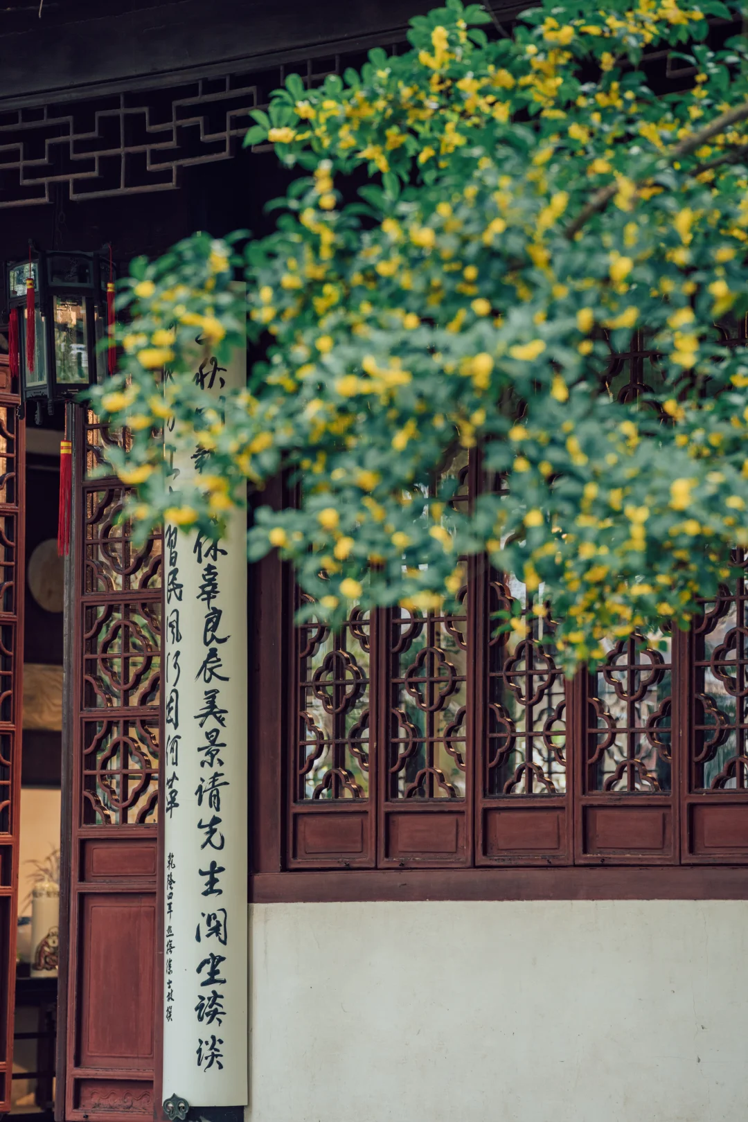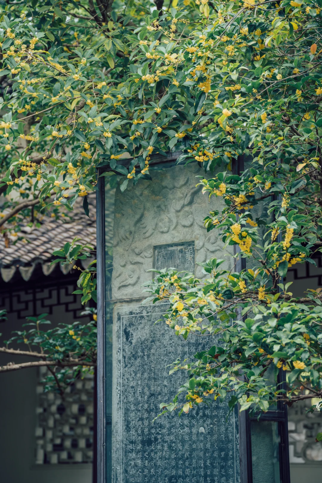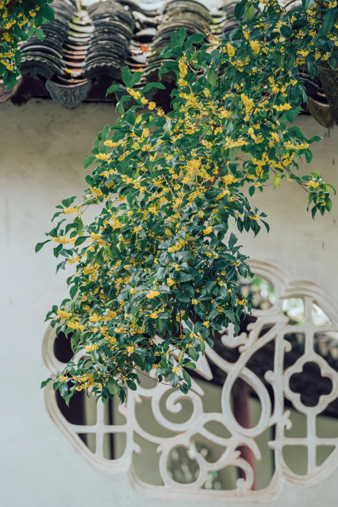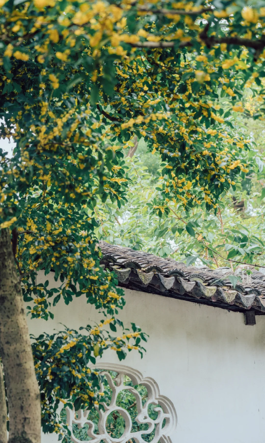沧浪亭的108扇花窗各不相同, 复廊蜿蜒, 光影被切割成诗——漏而不尽, 透而有韵, 是中国人骨子里的含蓄。 待秋风一起, 细碎金桂从花窗里探出来, 香气穿过那棂格。 那一刻突然懂了古人为什么建园林 ——把四时风月都收进一方天地里。 - 📍沧浪亭 -