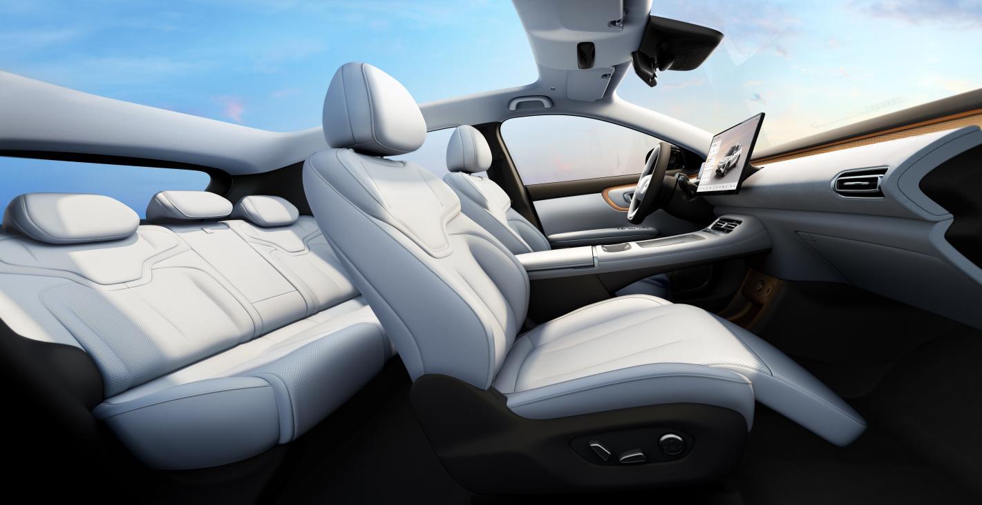 车内配备前排按摩座椅,支持多模式调节,后排座椅也可三角度调节。高配激光版搭载15.6英寸中控屏和10.17英寸仪表,支持多种手机互联功能。智能驾驶方面配备激光雷达和多颗感知硬件,支持自动超车、自动变道等功能。