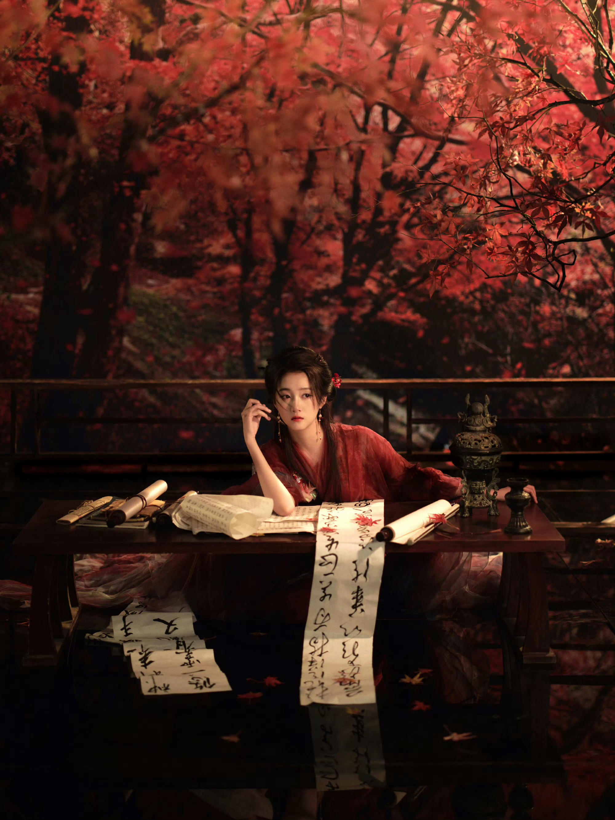 关晓彤红衣古风枫叶林里的关晓彤啊啊啊好美!