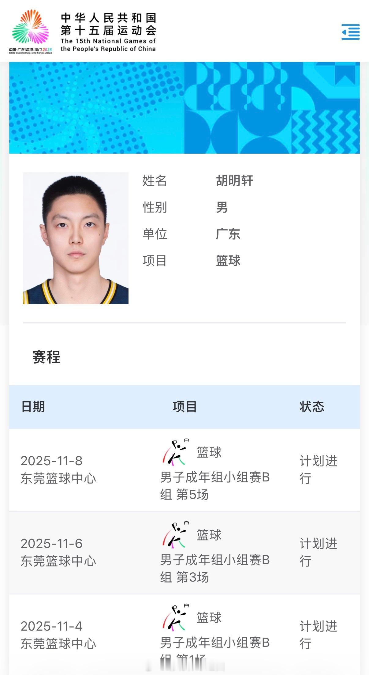 胡明轩十五运会 🔖十五运会广东代表团篮球(男子成年组)运动员胡明轩🐯[加油]
