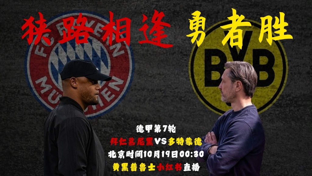 本周日凌晨00:30,多特蒙德将客场挑战拜仁慕尼黑,黄黑普鲁士也将为各位在小红书带来直播