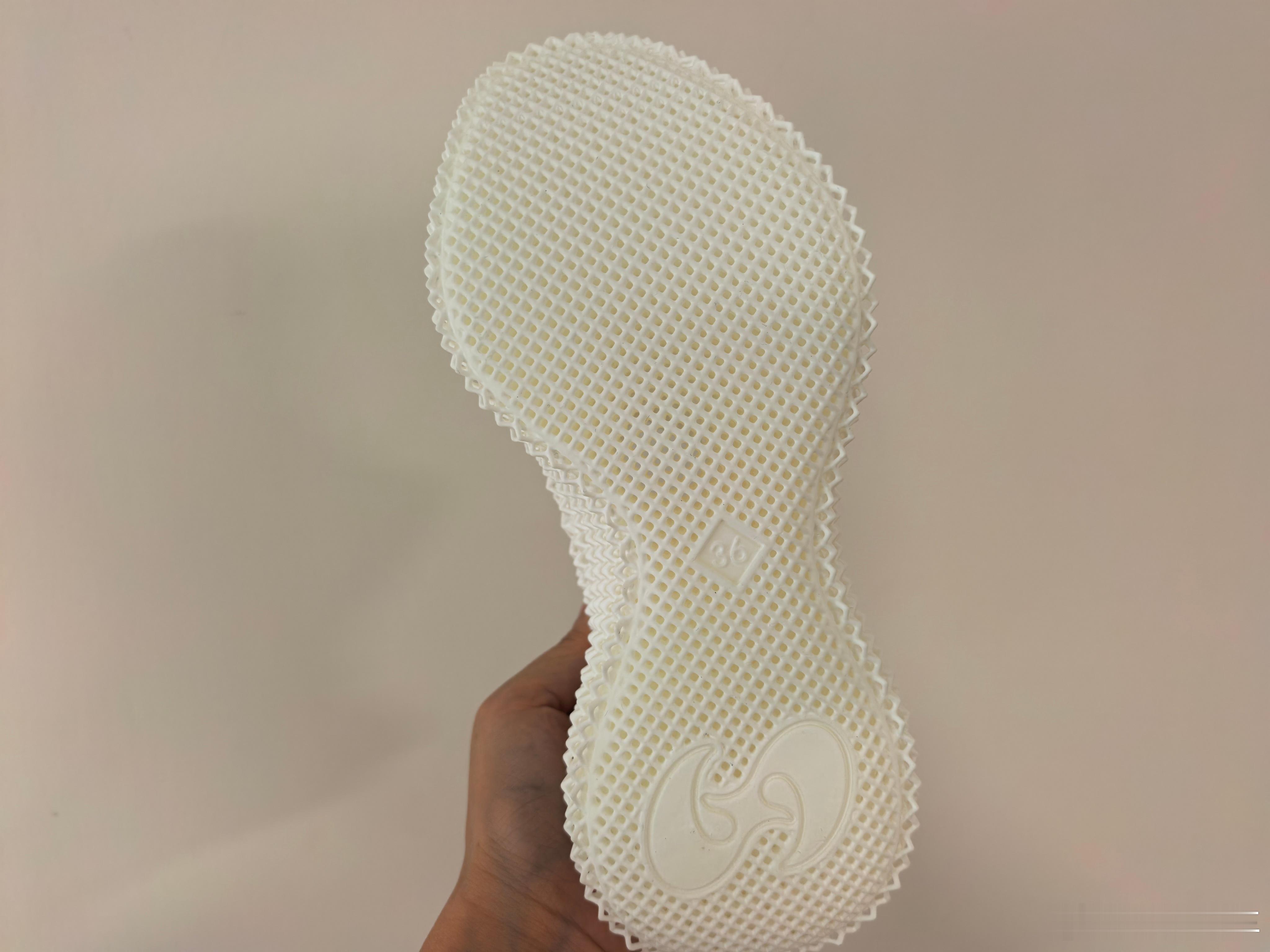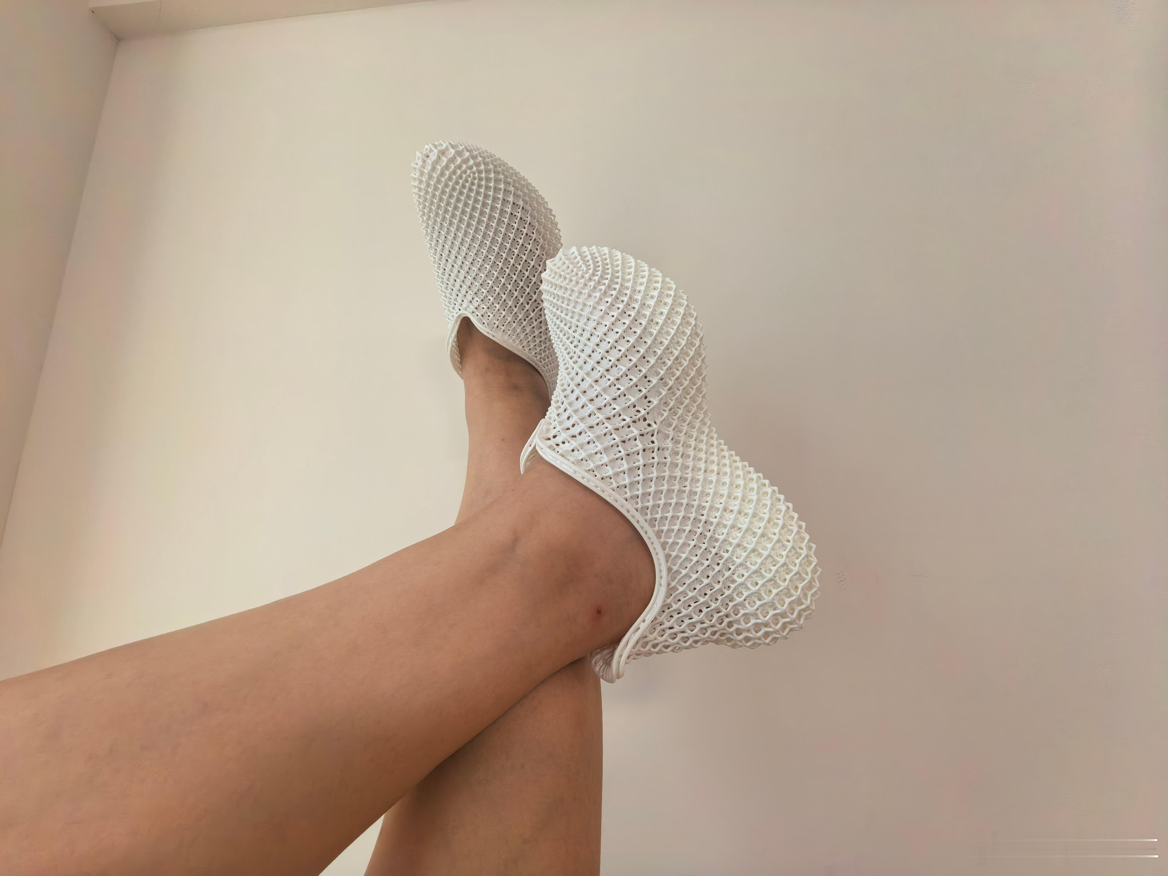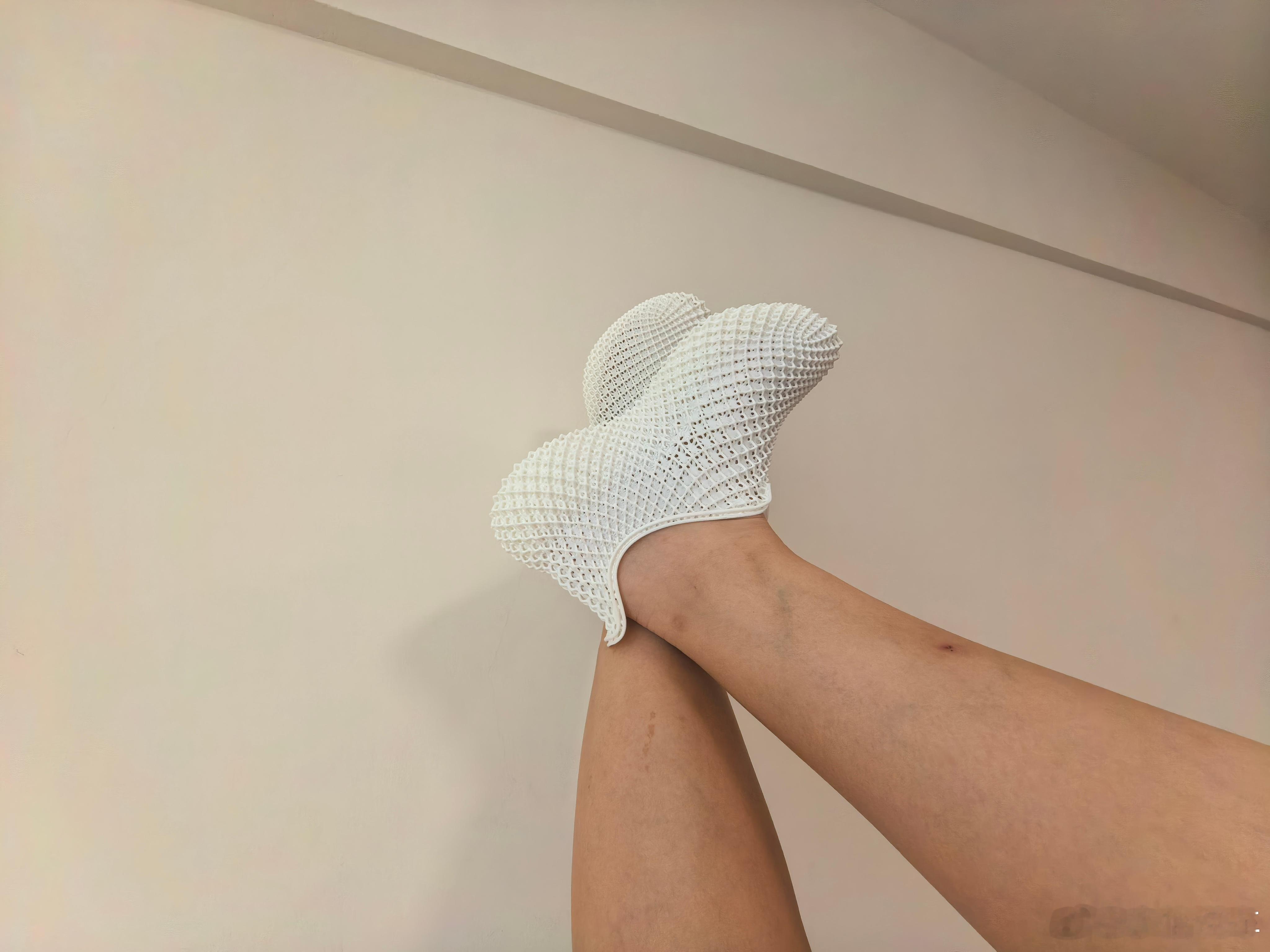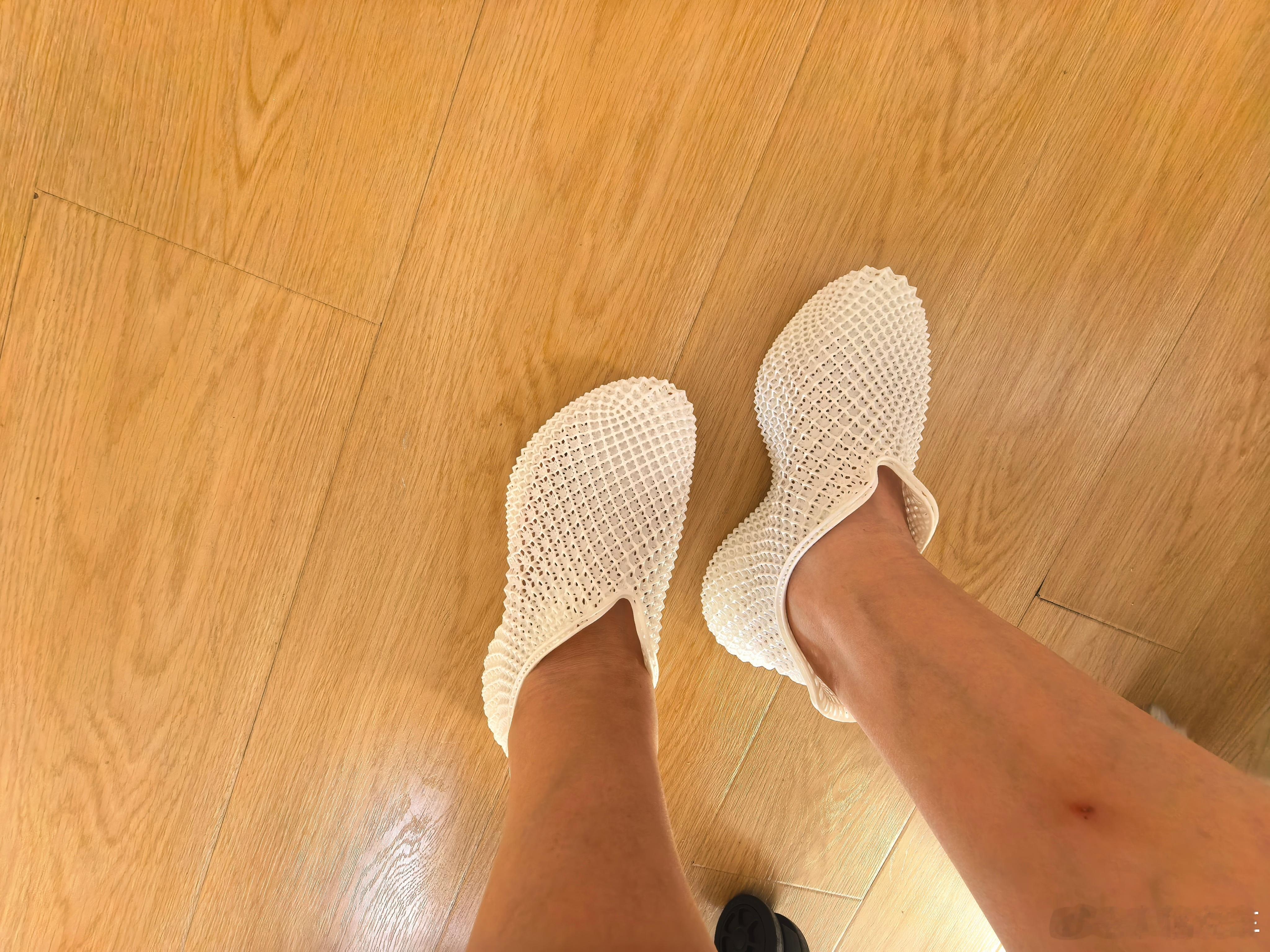 鞋底有一定的厚度,鞋面是镂空的,在“炕州”这个天气穿刚刚好,还能再穿一阵子,脚感还挺不错的[点赞]