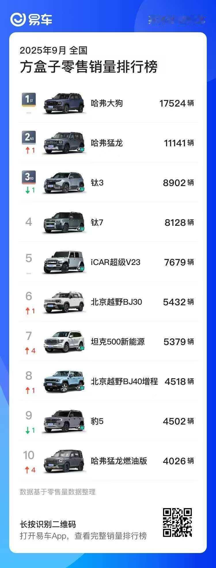 易车月考成绩单新鲜出炉!哈弗大狗17524辆蝉联9月方盒子车型销量TOP1!哈弗