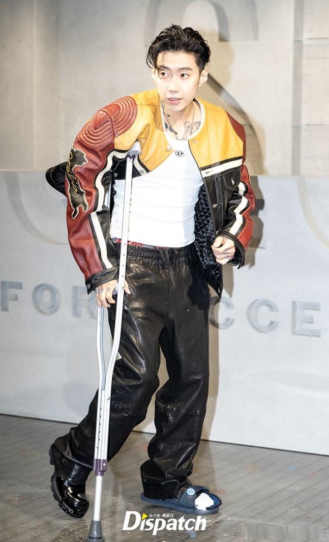17日,歌手朴宰范[超话] 带伤出席了某时尚品牌在首尔举行的宣传活动。