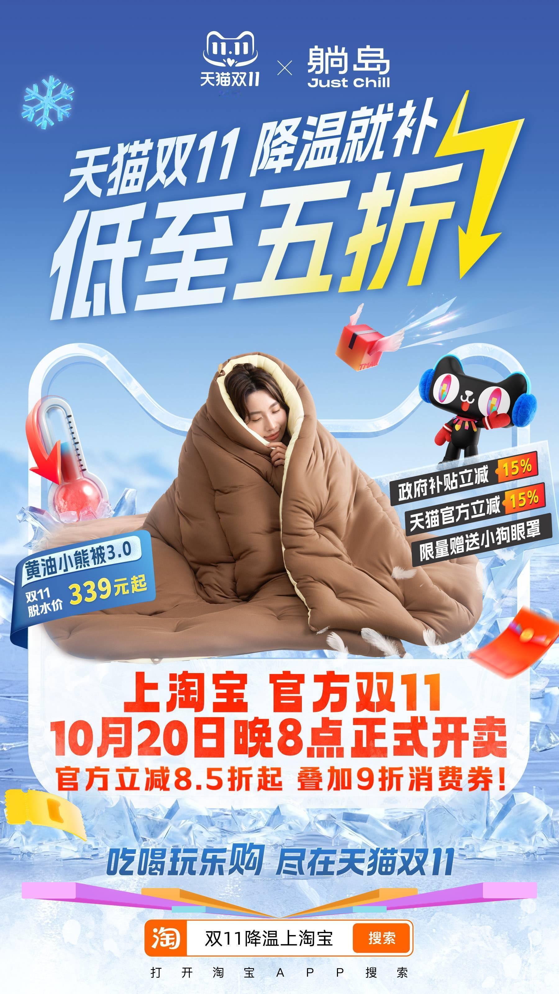 来来来,上淘宝,官方双11,20号晚8点开卖,全年真优惠,加购心仪好物,直接帮你冬日一站式购齐,温暖又时尚还能省,这还说啥,买就对了!天猫双11降温就补低至5折 天猫双11才是真优惠