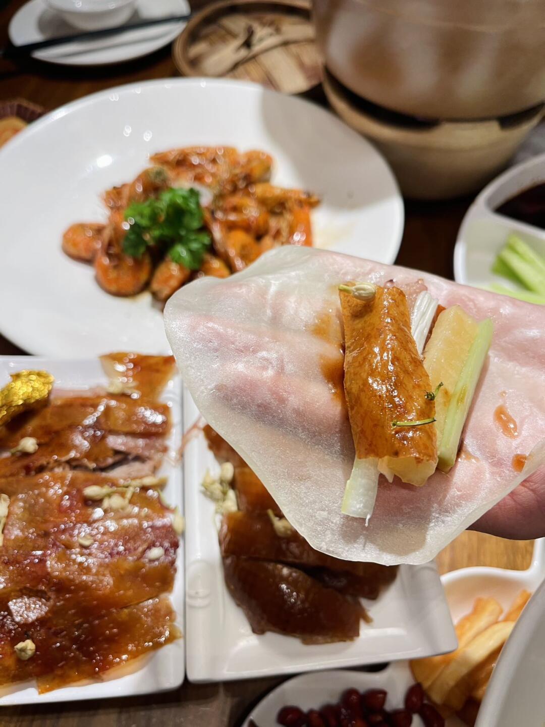 夸夸这道李白茉莉烤鸭——鸭皮烤得金黄酥脆,藏着满满的肉香。最妙的是茉莉花香让烤鸭染上了一层淡淡的香气,吃起来一点不腻。