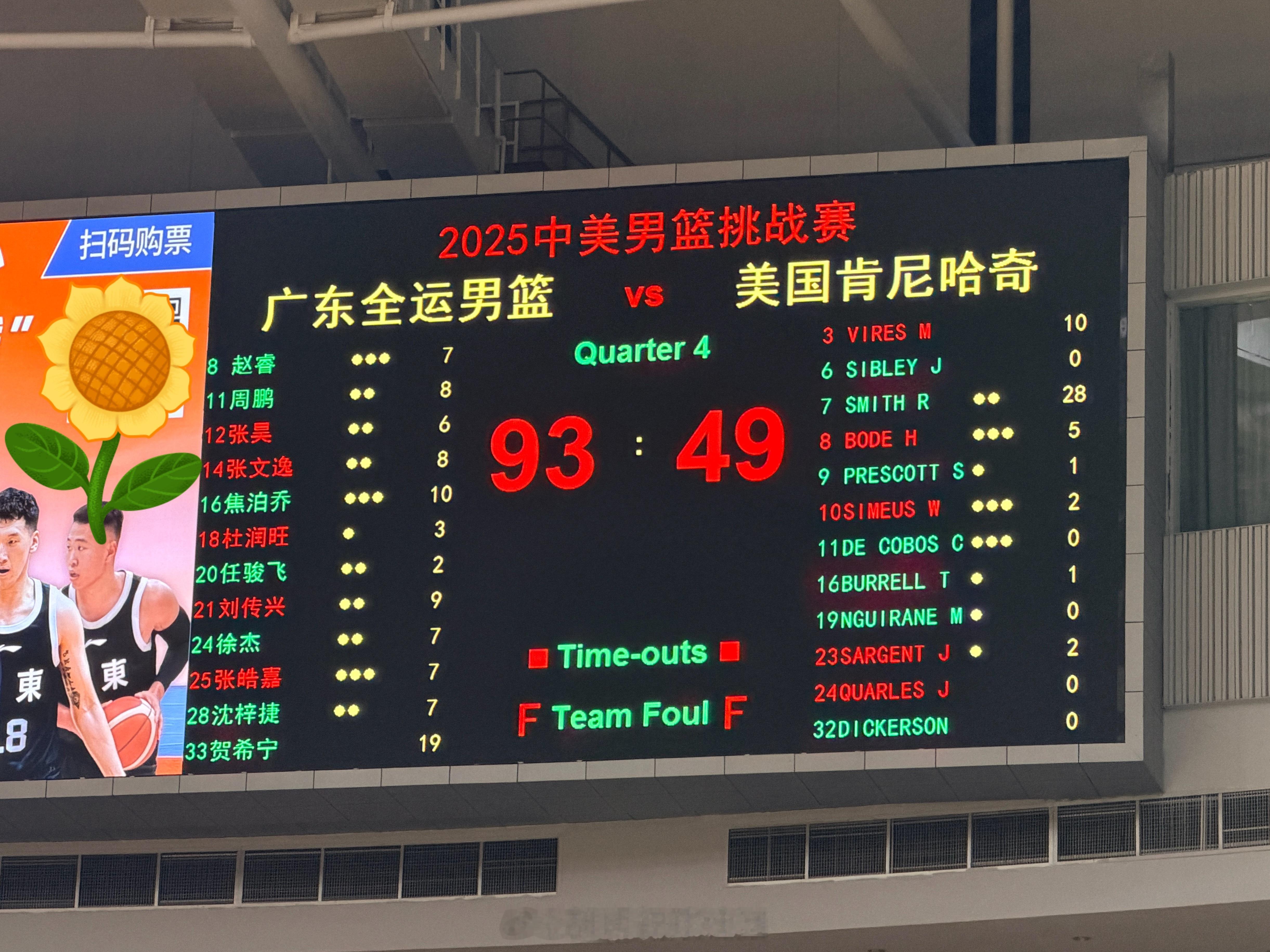 广东全运男篮 93 vs 49 美国肯尼哈奇男篮