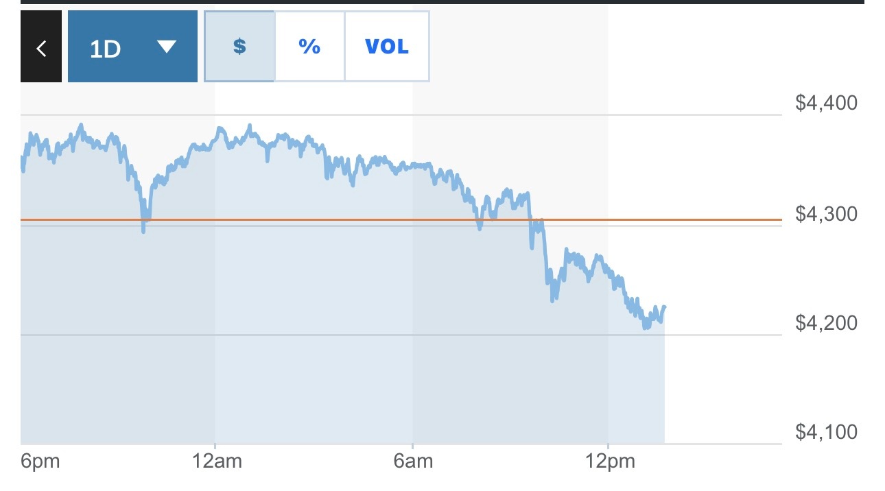 12月交割的白银期货下跌5.8%,同样是自4月4日以来最差单日表现。
