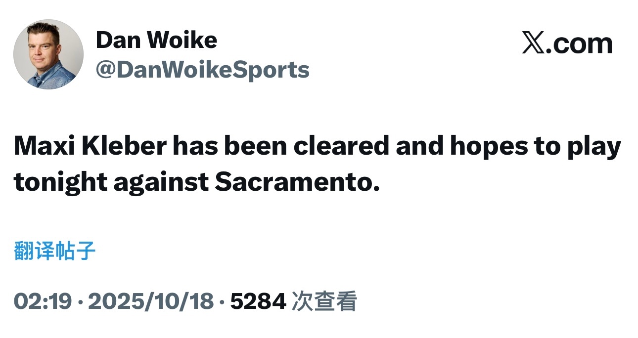 前天受伤的范德比尔特计划出战今天与国王的比赛,此前股四头肌受伤的克勒贝尔已经获得