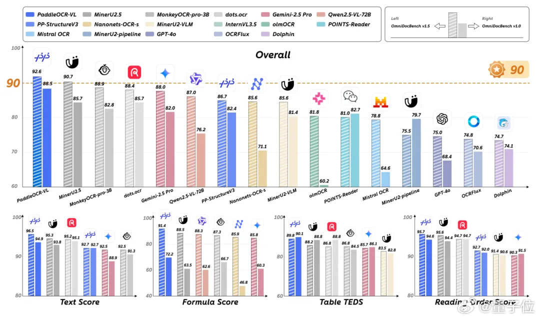 旗下新模型凭借0.9B参数量,在最新OmniDocBench V1.5榜单上拿下92.6分的成绩,获得综合性能全球第一。
