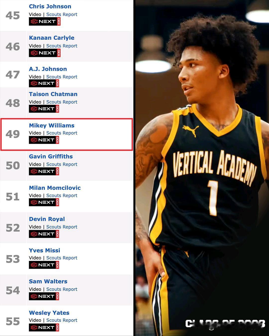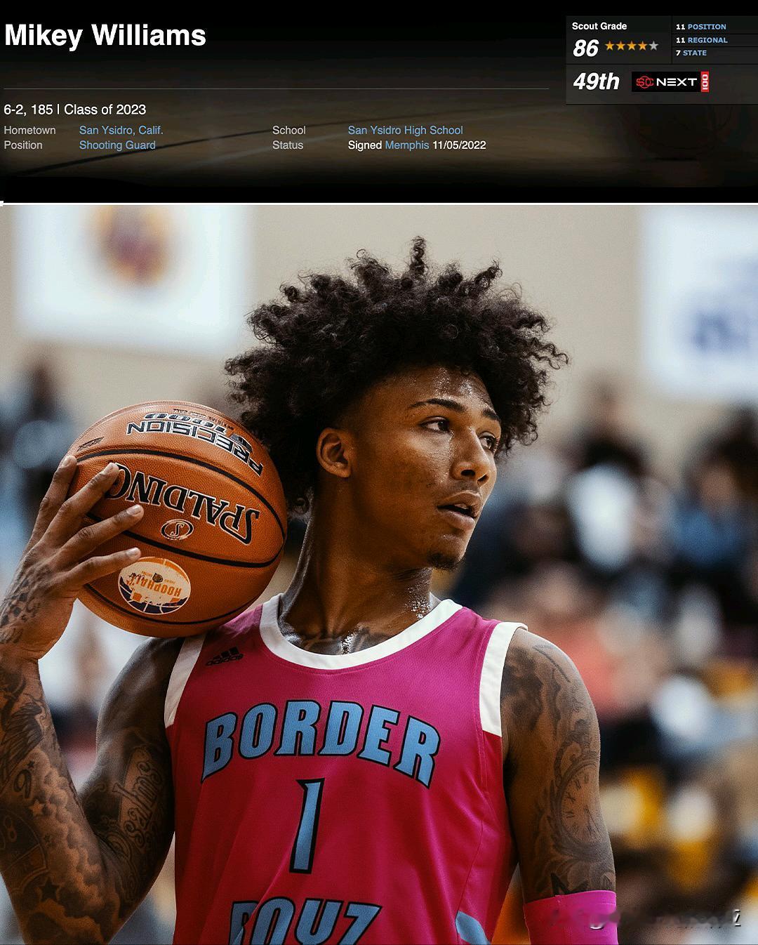 萨克拉门托州立控卫Mikey Williams说,我绝对想在毕业之前进入NBA,我的大学生涯不会持续太久,来自加州圣迭戈,身高6-3=191,大一红衫赛季在UCF出战18场比赛,场均14分钟得到5.1分1.9篮板。大鲨鱼奥尼尔担任球队总经理,小儿子Shaqir O'Neal近期荣获队内扣篮大赛冠军。