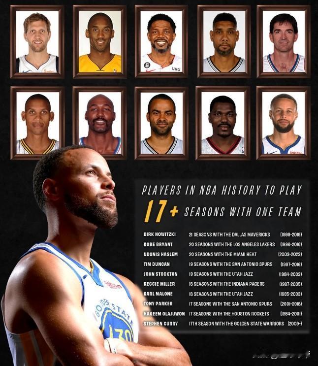 忠诚无价,库里成为NBA历史上第10位为一支球队效力17年的球员! 新赛季是库