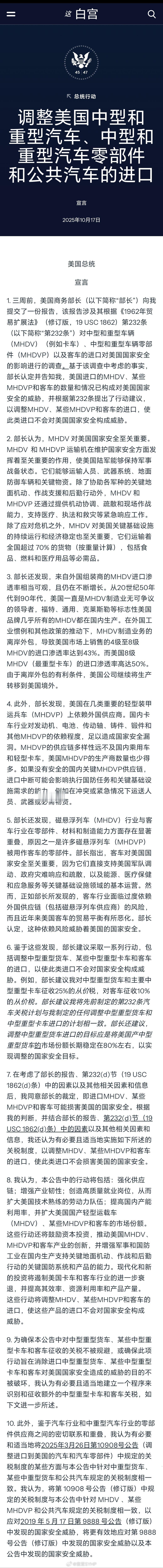 特朗普对进口中重卡征收25%关税特朗普:这是商务部长给我的提议
