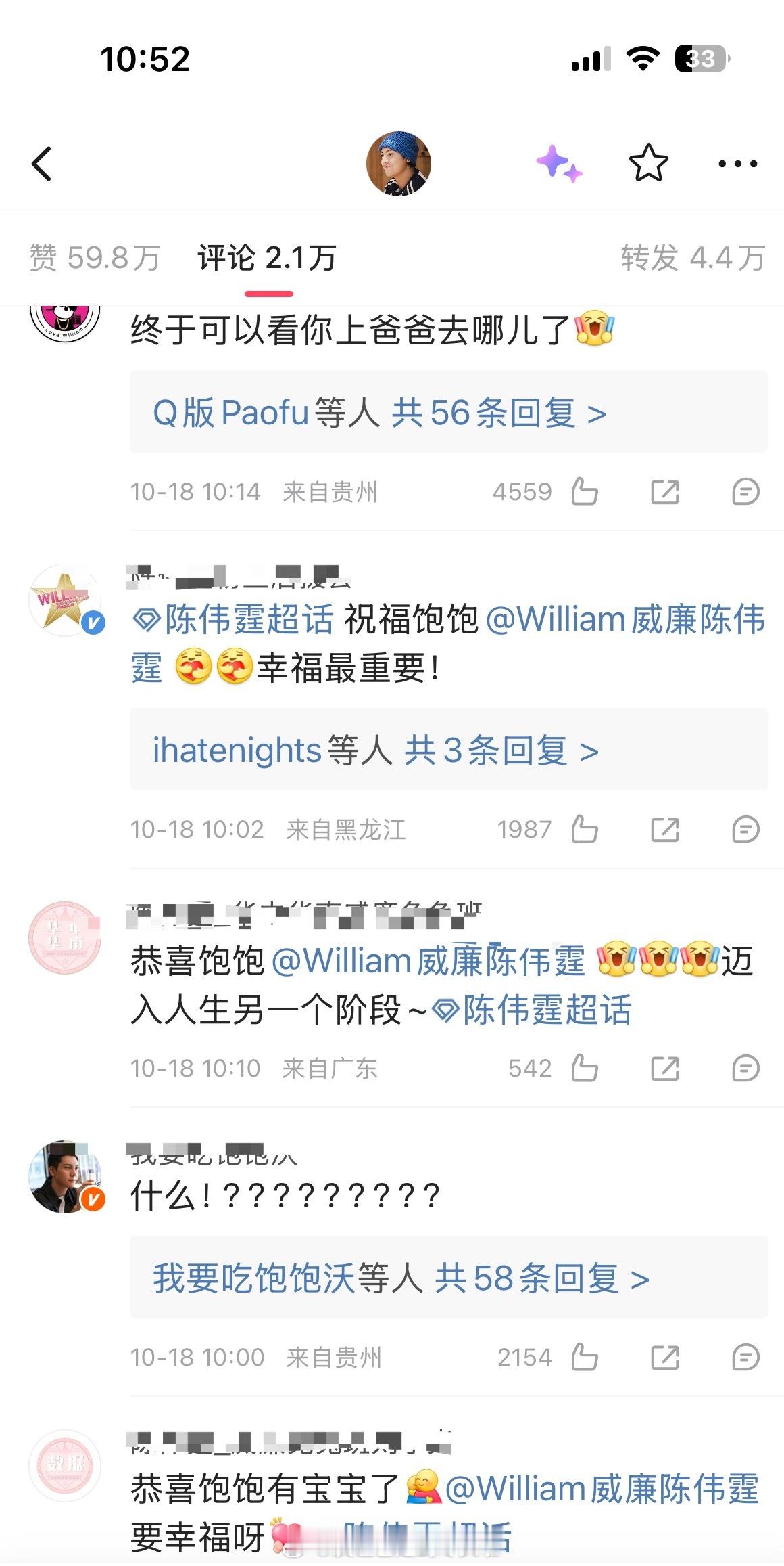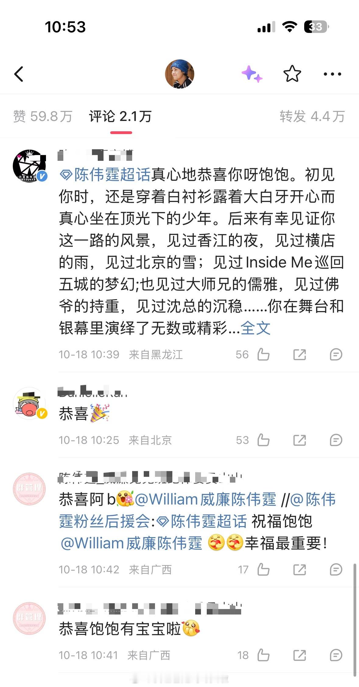 没有cp粉舞,陈伟霆评论区也是粉丝高兴在祝福,事业回春家庭美满,接好命哥的好命[拜托][拜托][拜托]