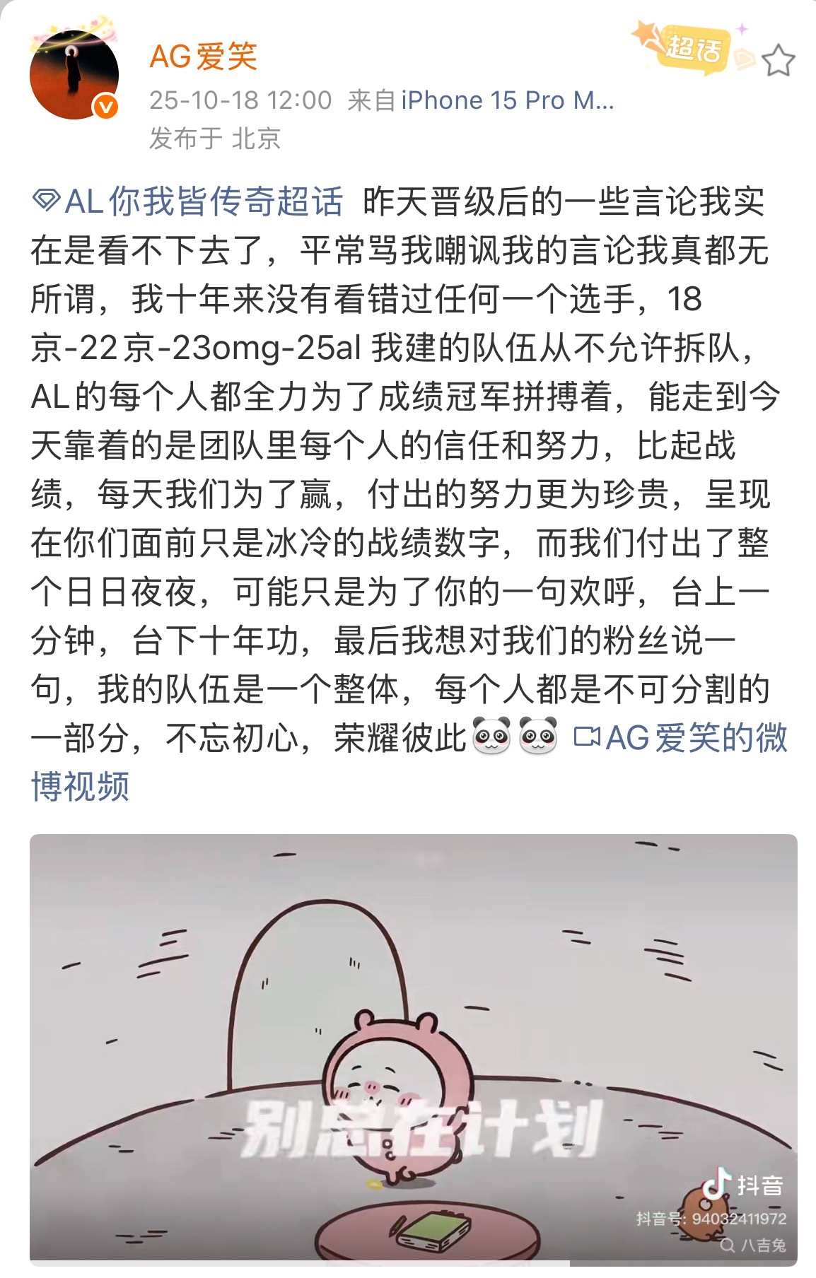 AL的每一个选手都全力拼搏,能走到今天靠着是每个人的信任和努力!