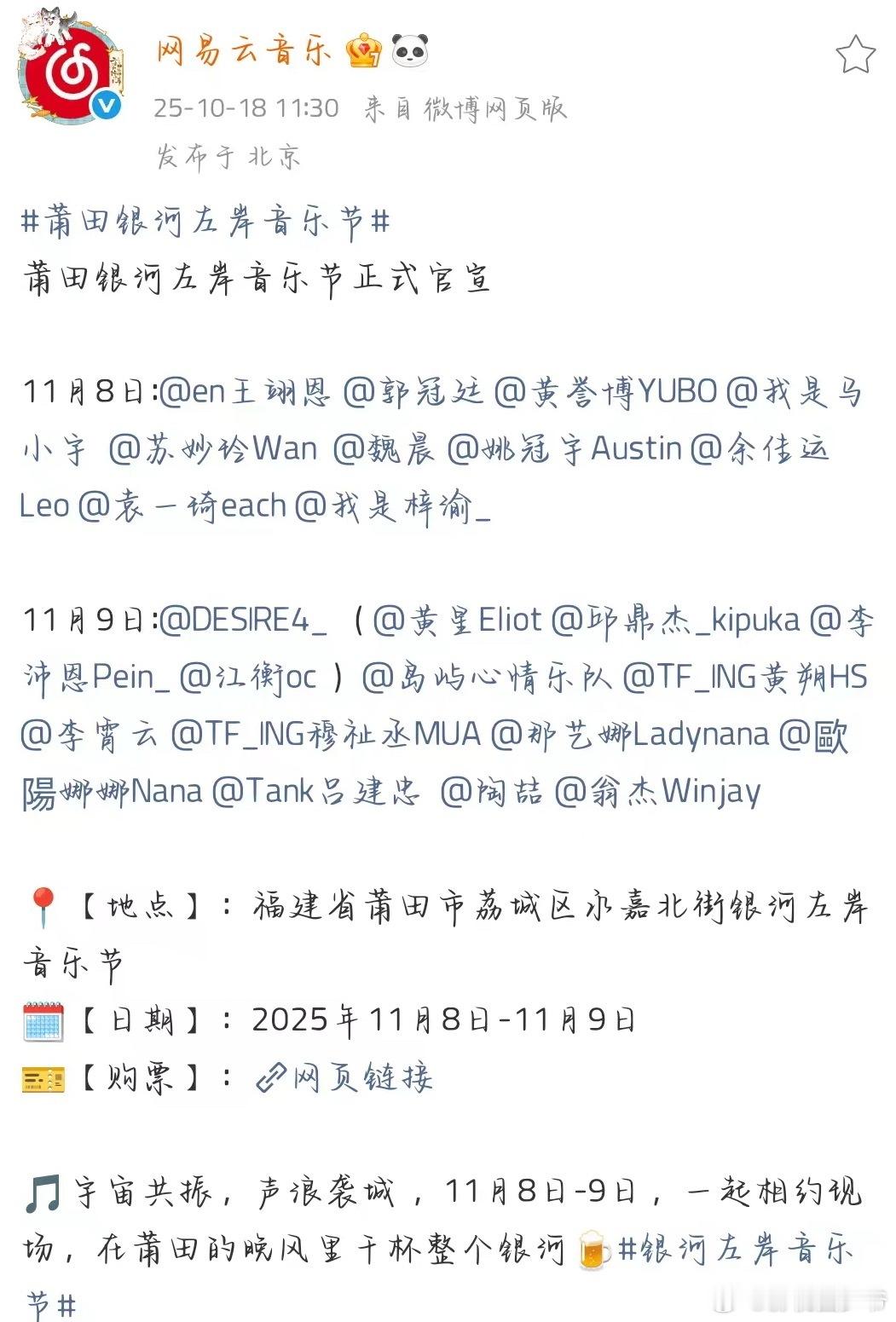 莆田银河左岸音乐节,今天正式官宣!所以超大声告诉我,期待谁?