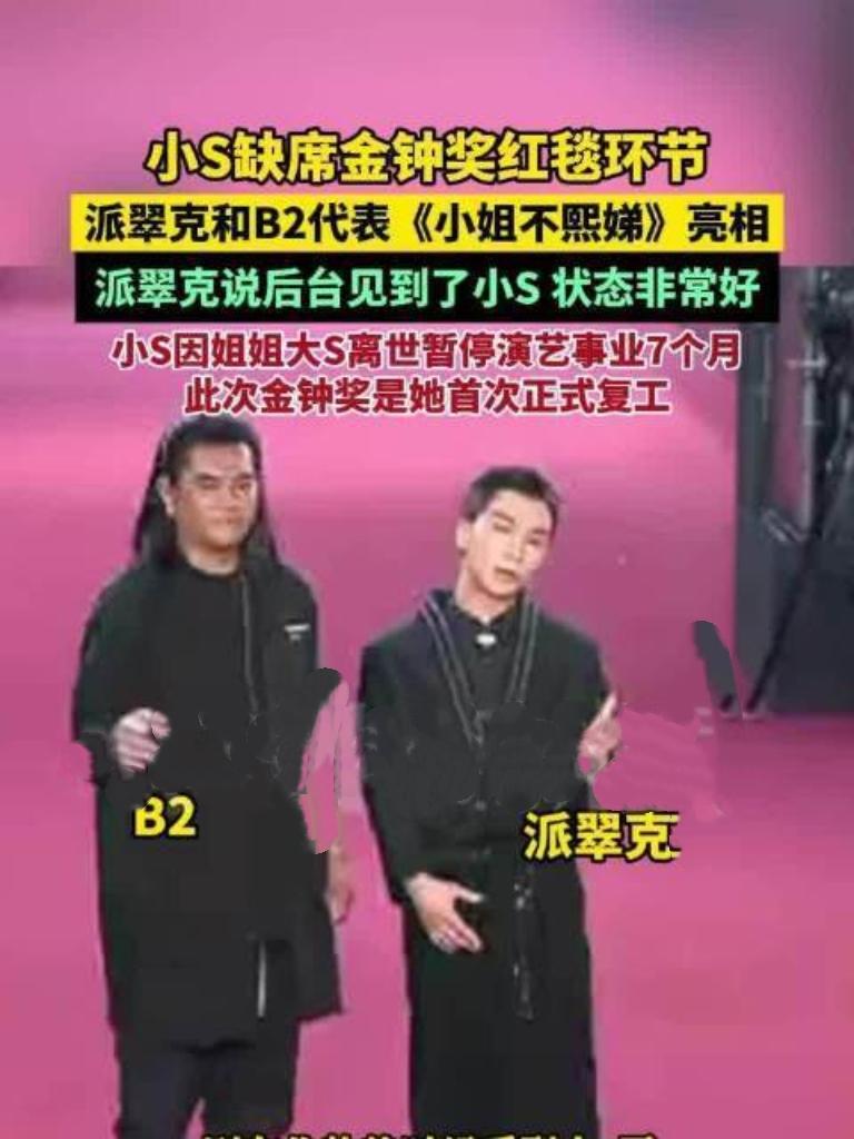 10月17日金钟奖红毯,小S意外缺席,仅派翠克与B2亮相。此前她因大S离世停工,