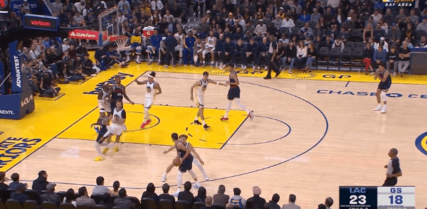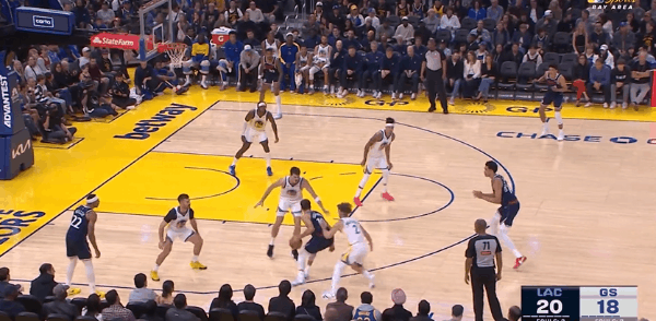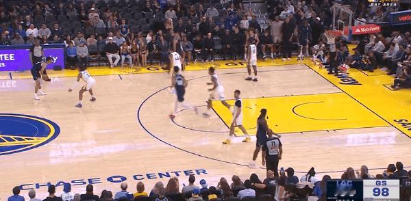 科比桑德斯今天打的不错,但这比赛打的其实挺不桑德斯的:一方面是他大学25季中距离出手占比高达43.4%,但这场投篮分布非常魔球,不知道是不是教练组对他投篮分布做出了优化;另一方面是他大学平均三分命中率只有32.9%,上赛季是34.2%。一开始先用两记三分打开手感,全场9中4,也算是小吃了顿饺子。