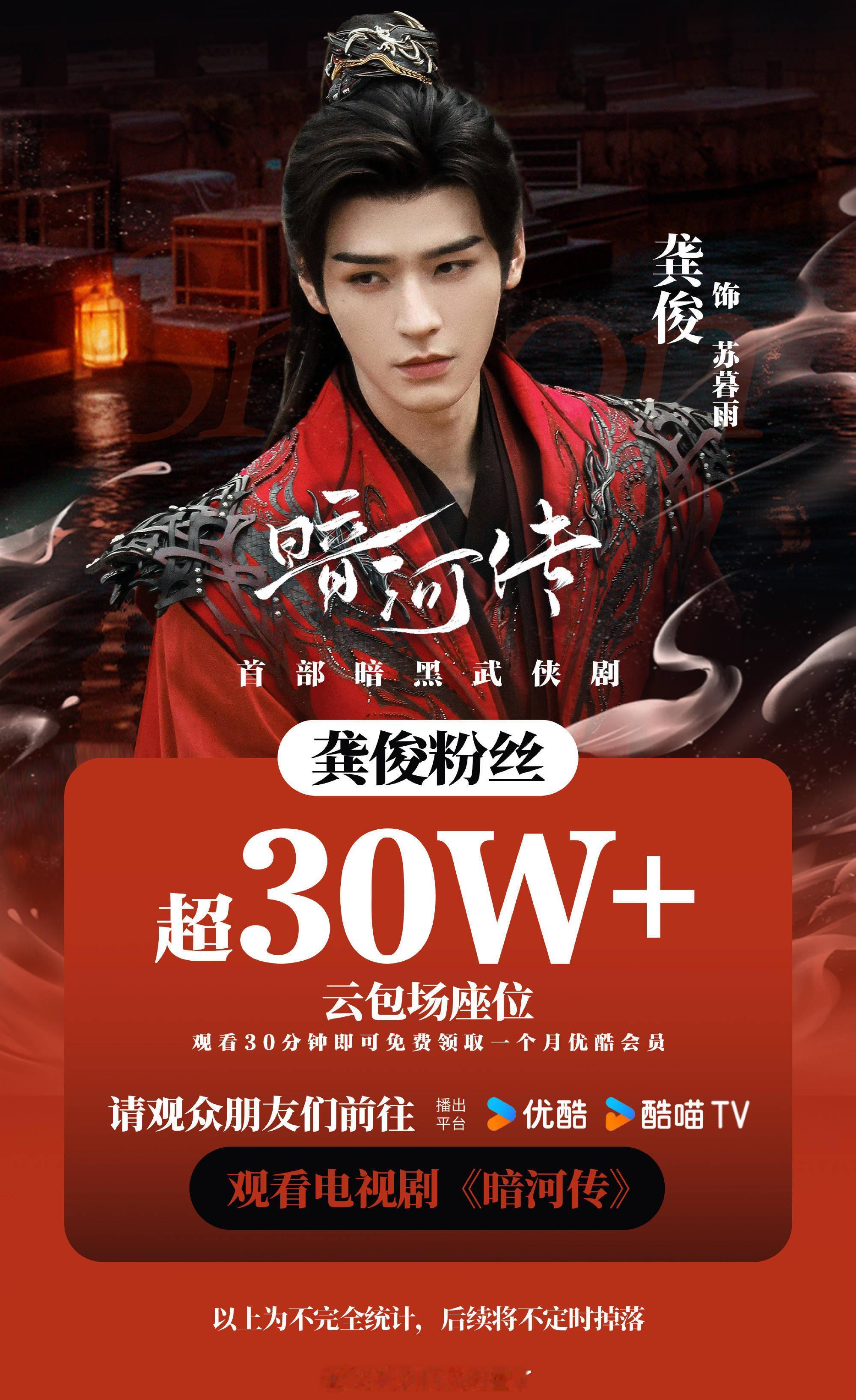 龚俊家粉丝30w+的云包场,在不算剧方、不算主创、不算亲友、不算其他任何加座的情况下,光粉丝包场就排在了内娱云包场总榜前三!四年了gsjj还是那么能打!!![good][good][good]