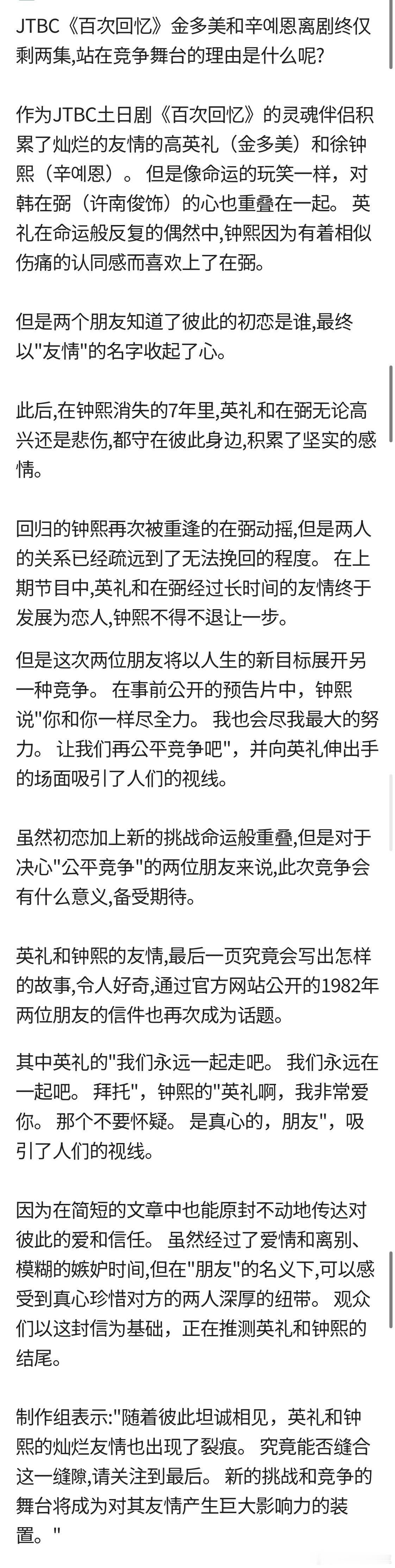 制作组表示:当彼此坦诚相待时,英礼和悰喜灿烂的友谊也产生了裂痕。这裂痕能否缝合请拭目以待。新的挑战与竞争舞台将成为影响这段友谊的重要契机。