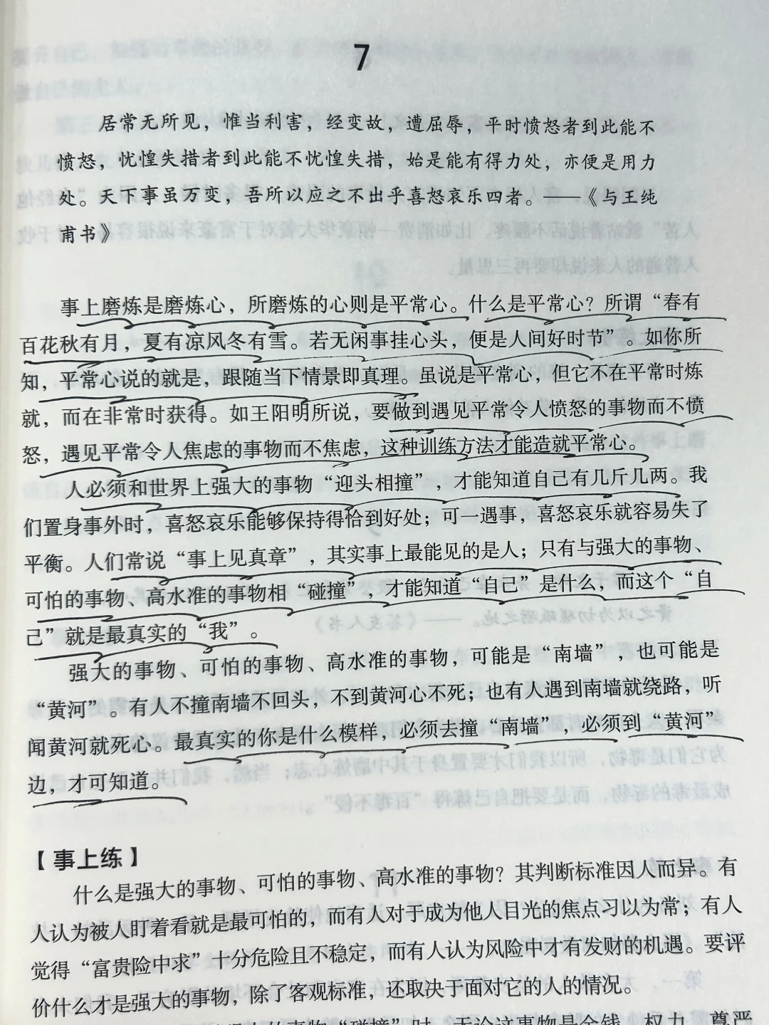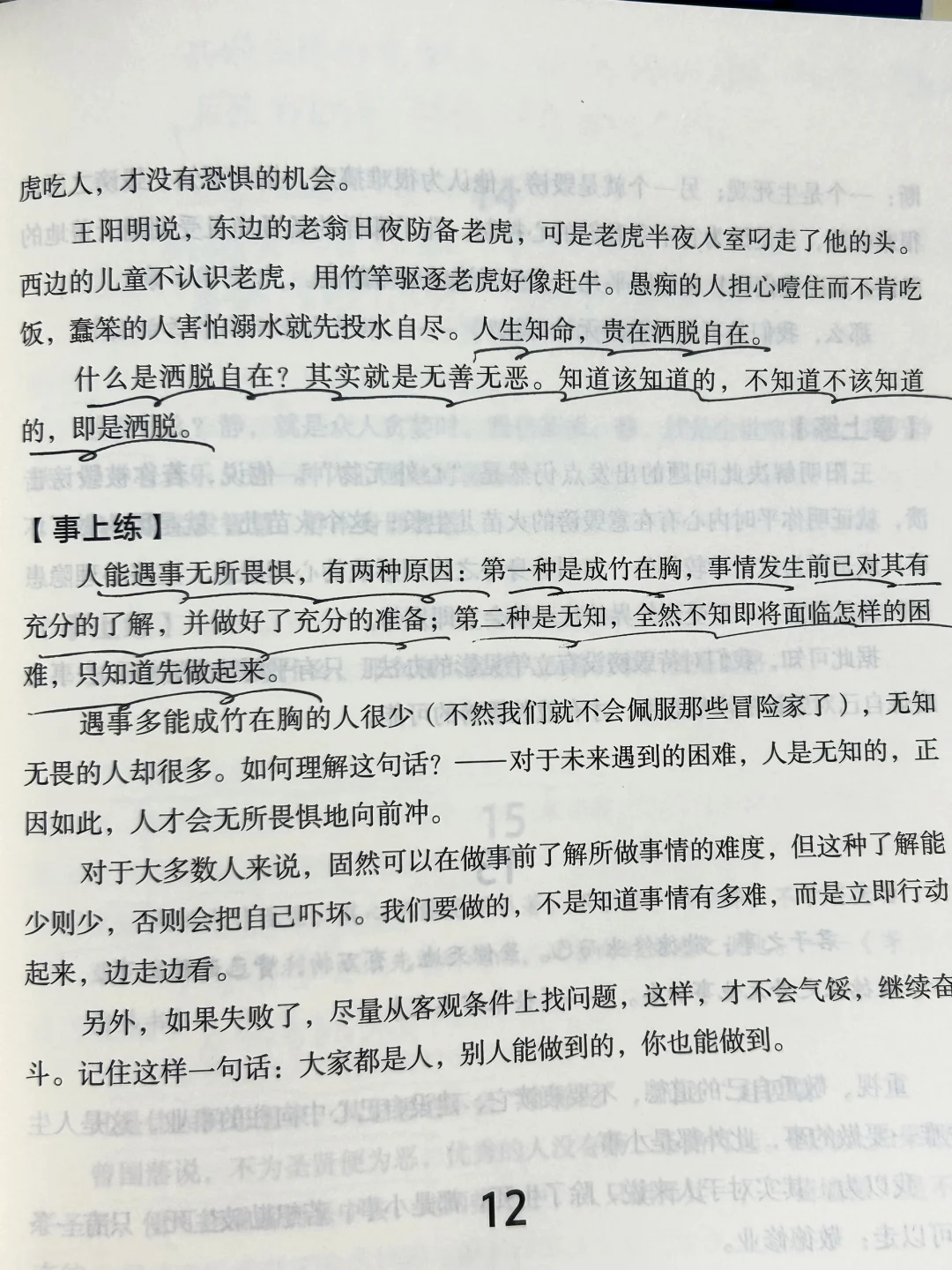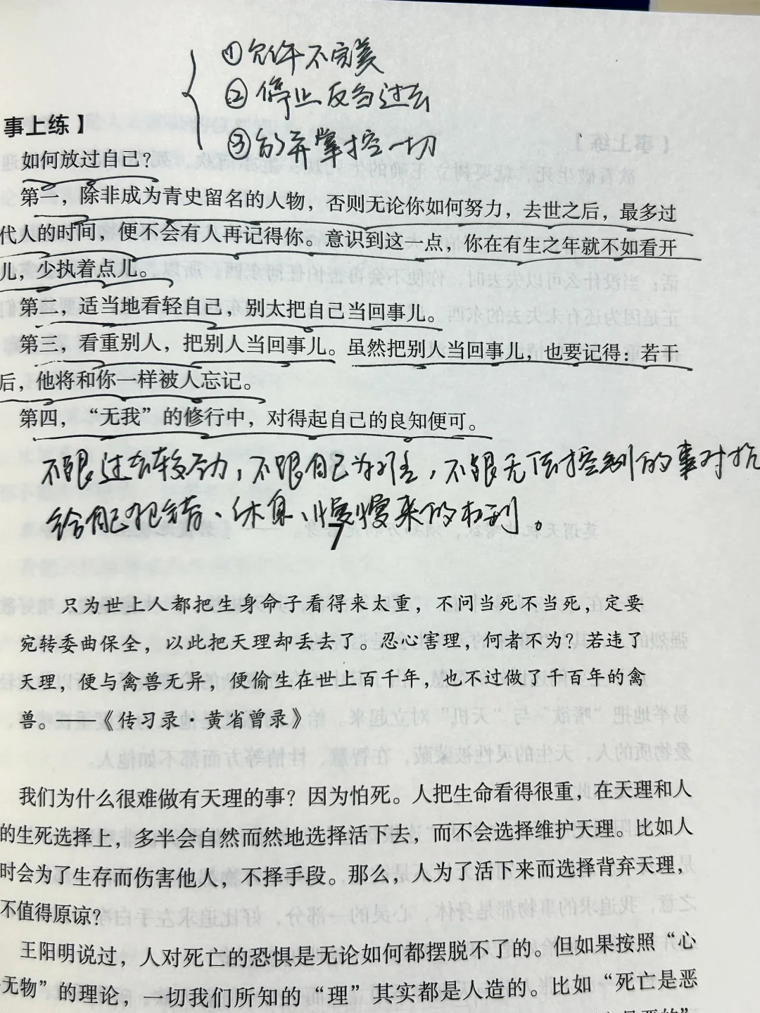 其次,专注当下,别管结果,先干再说。 书中指出:“读书作文安能累人?人自累于得失耳。”我们做事不成,往往毁在得失心太重。阳明心学教导我们,行动的本身就是意义。