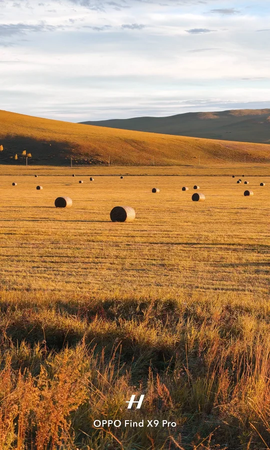 ▶ 逆光下的草垛清晰可见,暗部牧草细节不丢失