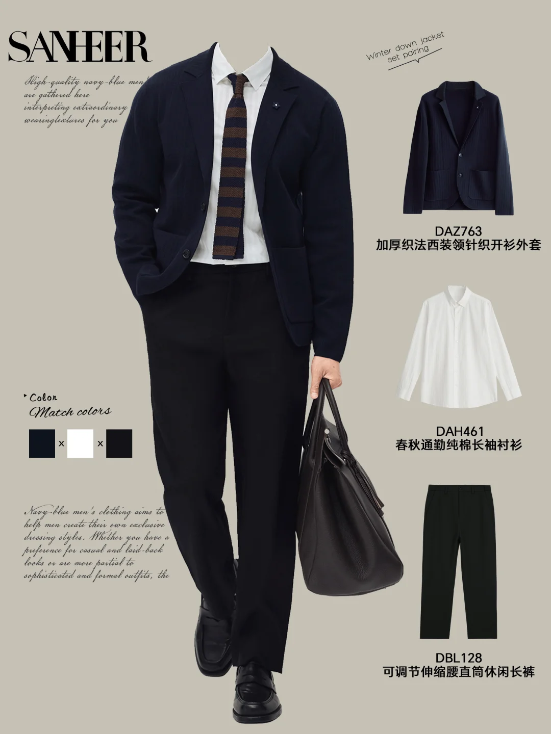 👉 永恒的经典组合!解开第一颗扣子,避免过于死板。下班脱掉西装,直接去约会也超有型。