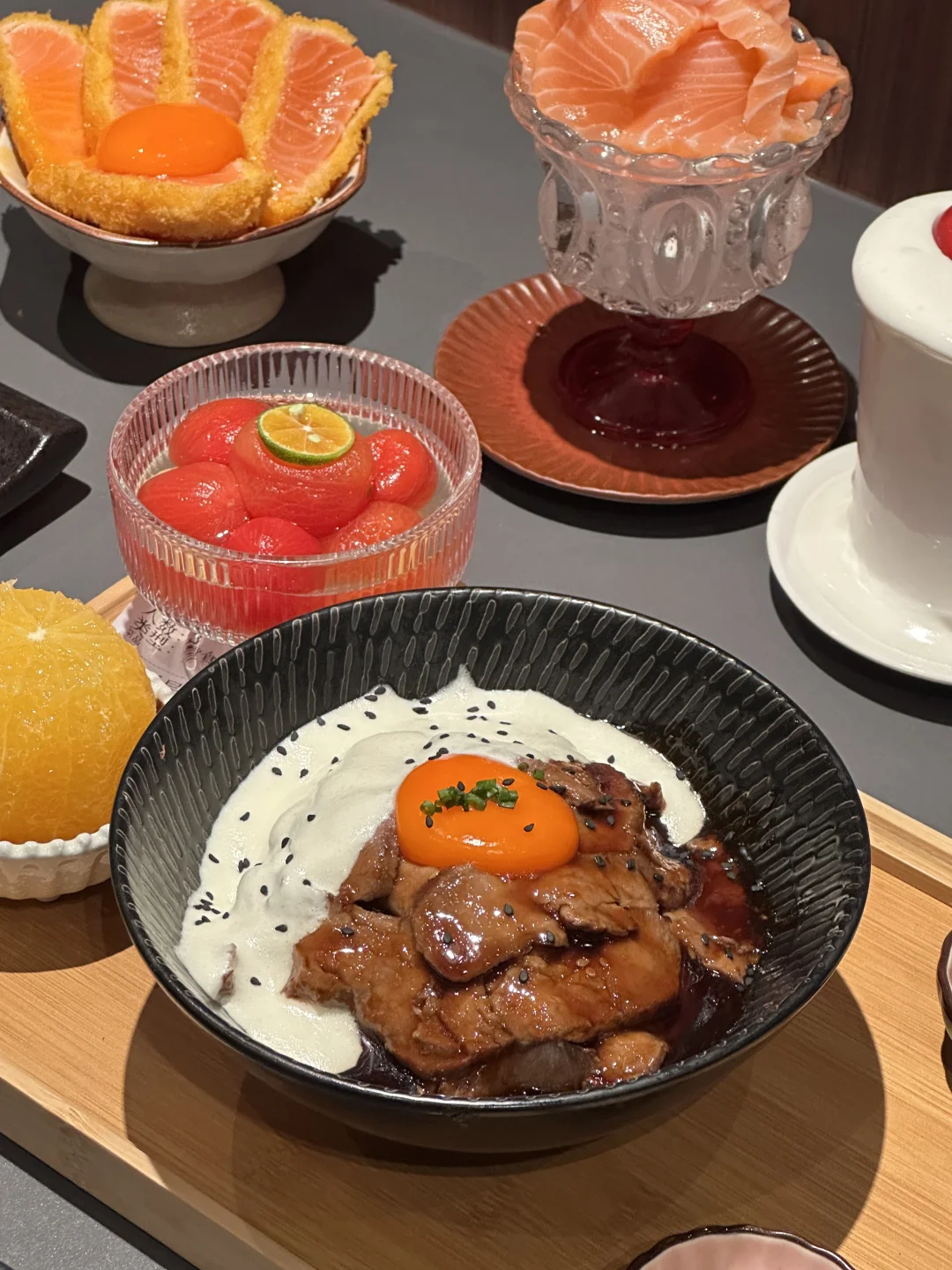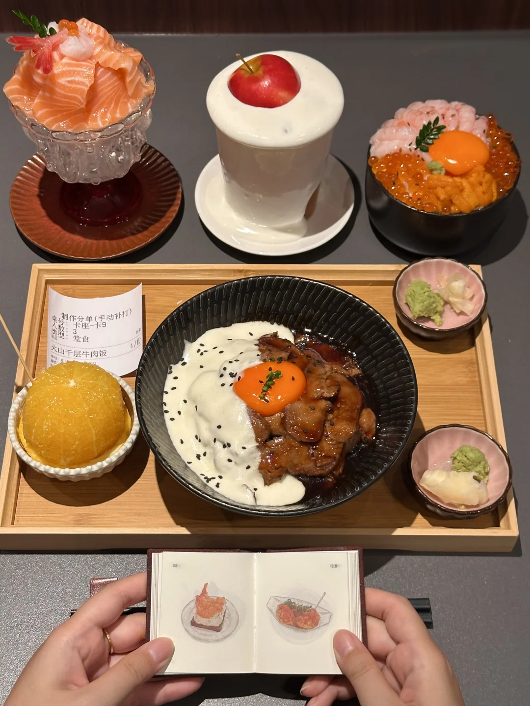 已经五刷了! 千层和牛饭 厚炸三文鱼 鹅肝饭 苹果饮品 适合一人食或者二人食