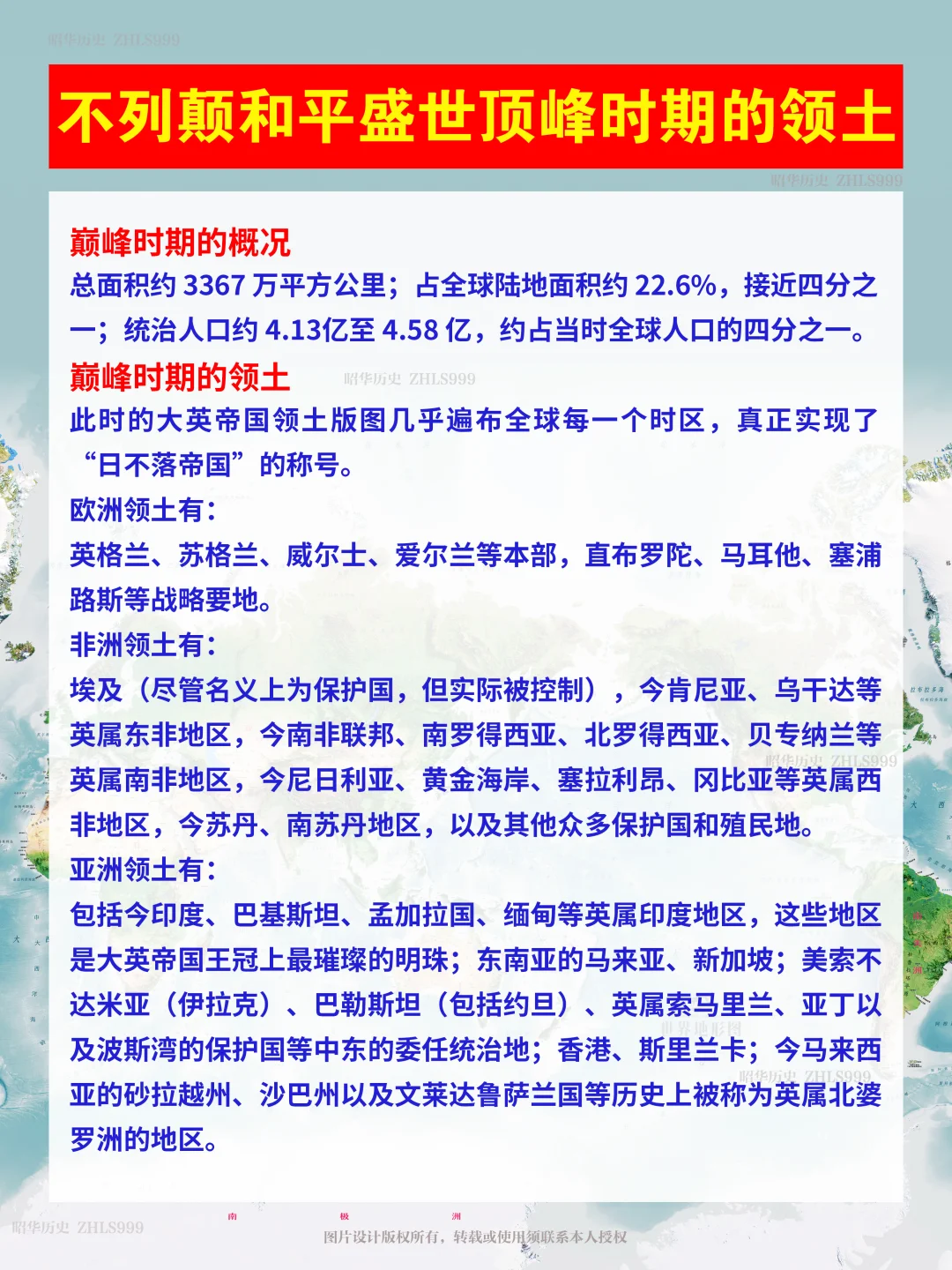 此时的大英帝国领土版图几乎遍布全球每一个时区,真正实现了“日不落帝国”的称号。
