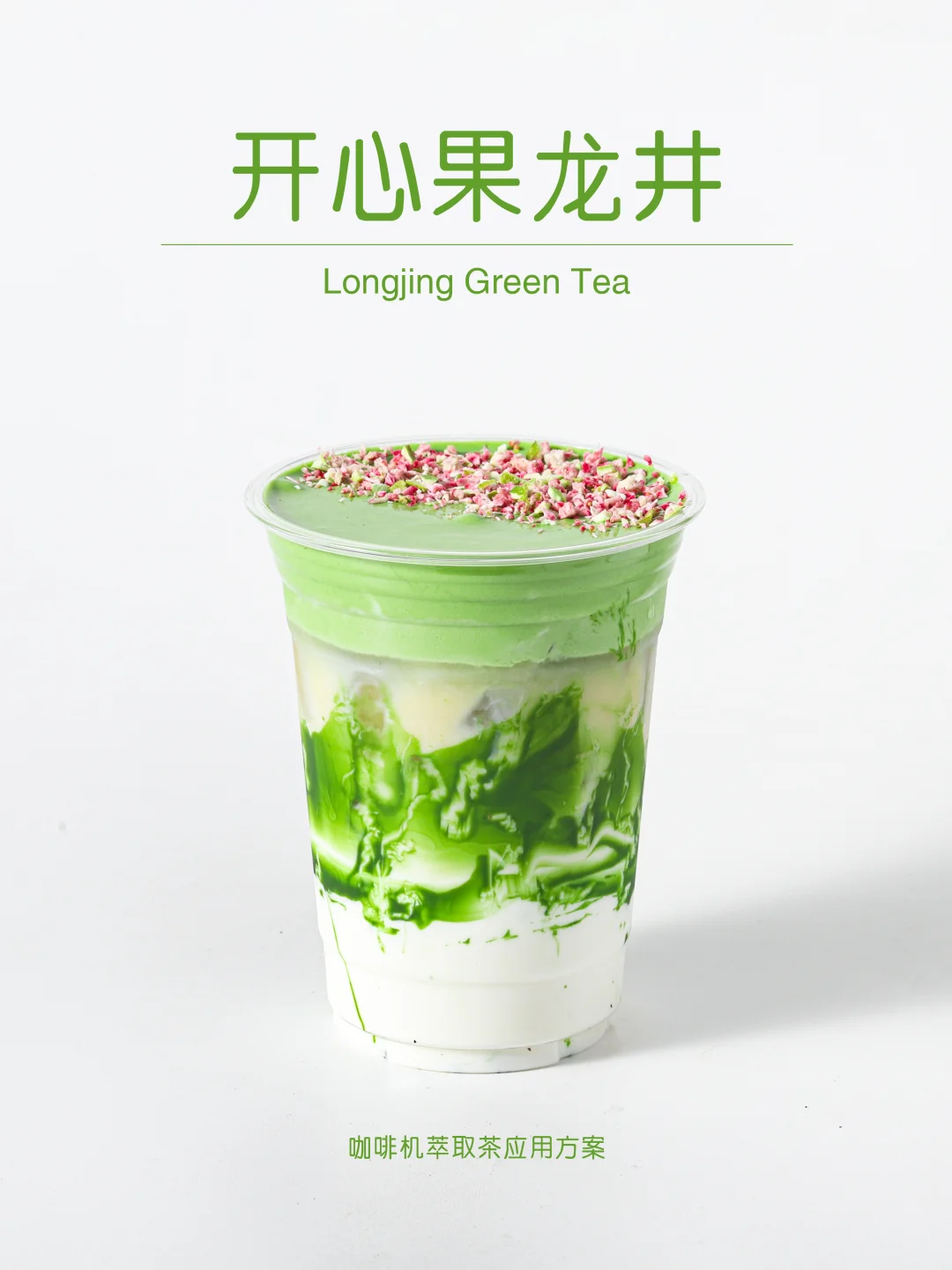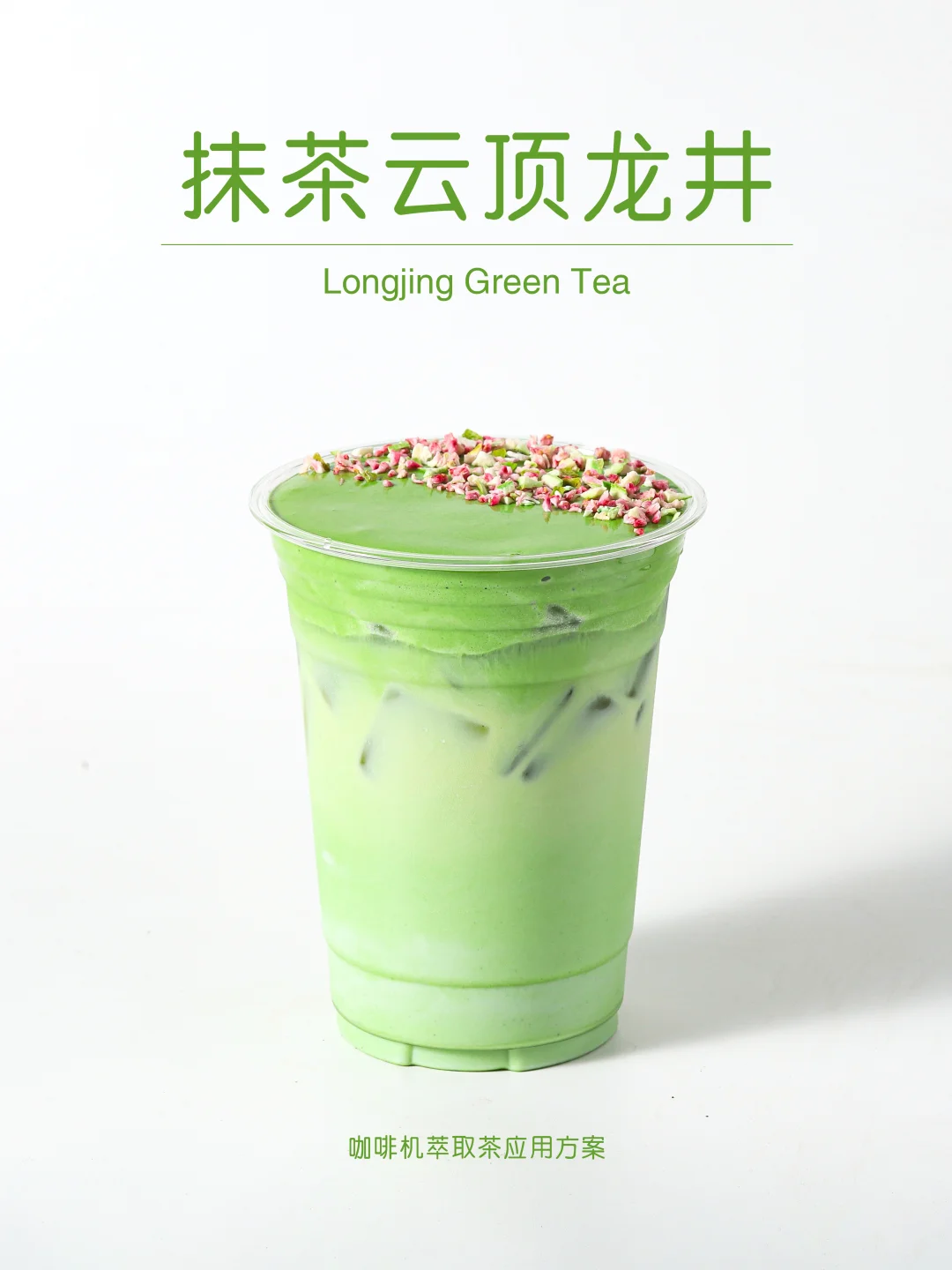 📦材料:抹茶液 10ml、现萃龙井 1 份、生牛乳 20ml、牛奶 120ml、专用糖浆 15ml、冰块、抹茶奶盖(封顶)👩🍳步骤:抹茶液 + 牛乳 + 牛奶 + 糖浆搅匀→加冰 + 倒龙井→盖奶盖,颜值拉满!