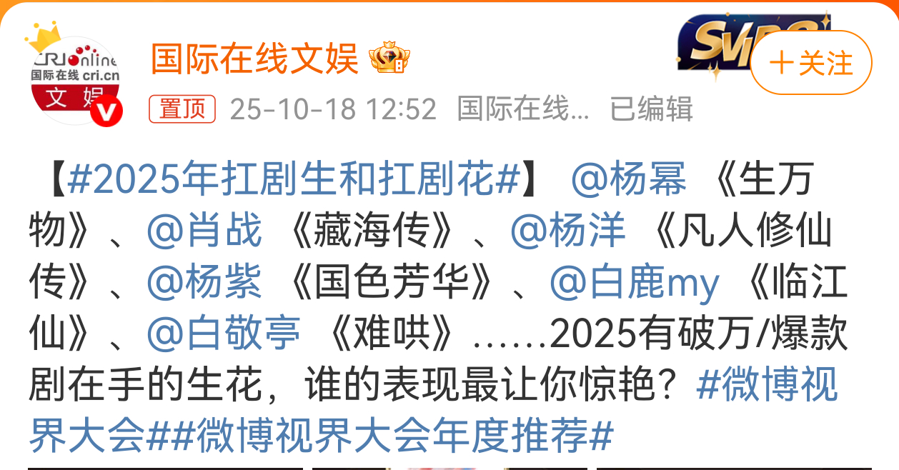 2025扛剧生和扛剧花上热搜了[手指比心] 2025年扛剧生和扛剧花