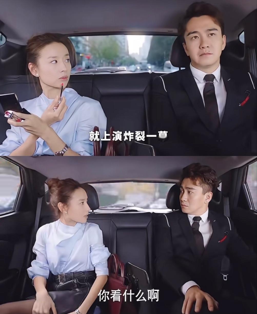 话说这不离谱吗, 一个是集团的董事长秘书一个是集团的董事长亲儿子, 他俩在现实里会拼车相遇吗? 女孩豪放无羁一会涂抹口红一会穿丝袜, 把男的惊得目瞪口呆, 一看就是欢喜冤家的偶像剧。 不过董洁真是天选梳丸子头的美女, 侧颜这鼻子绝了。