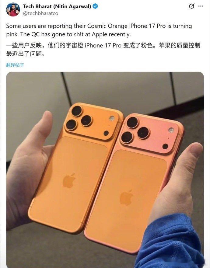 iPhone17被曝机身褪色科技媒体GSMArena今天(10 月 18 日)发布博文,称部分苹果iPhone 17 Pro及iPhone 17 Pro Max的首批用户反映,其设备遭遇了机身褪色问题,主要集中在“星宇橙”和“深蓝色”两种配色上。