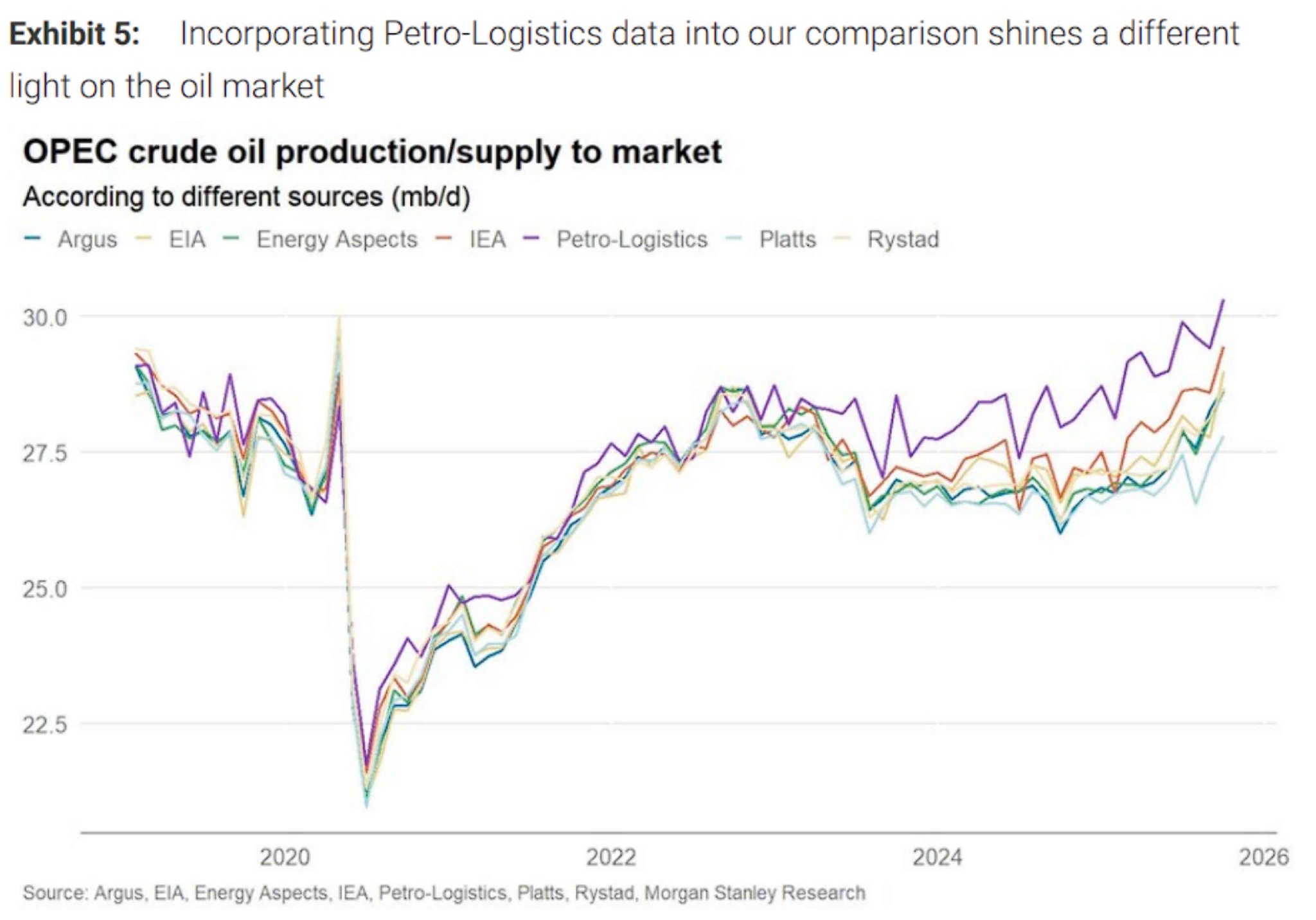 在谘询了大量实物交易市场人士后,大摩得到的反馈出人意料:多数业内人士认为Petro-Logistics的估算"最为准确"。该机构专注于OPEC产量估算已超过45年,基于庞大的信息来源网络、卫星油轮追踪和政府报告,并提供透明的数据构建方法。