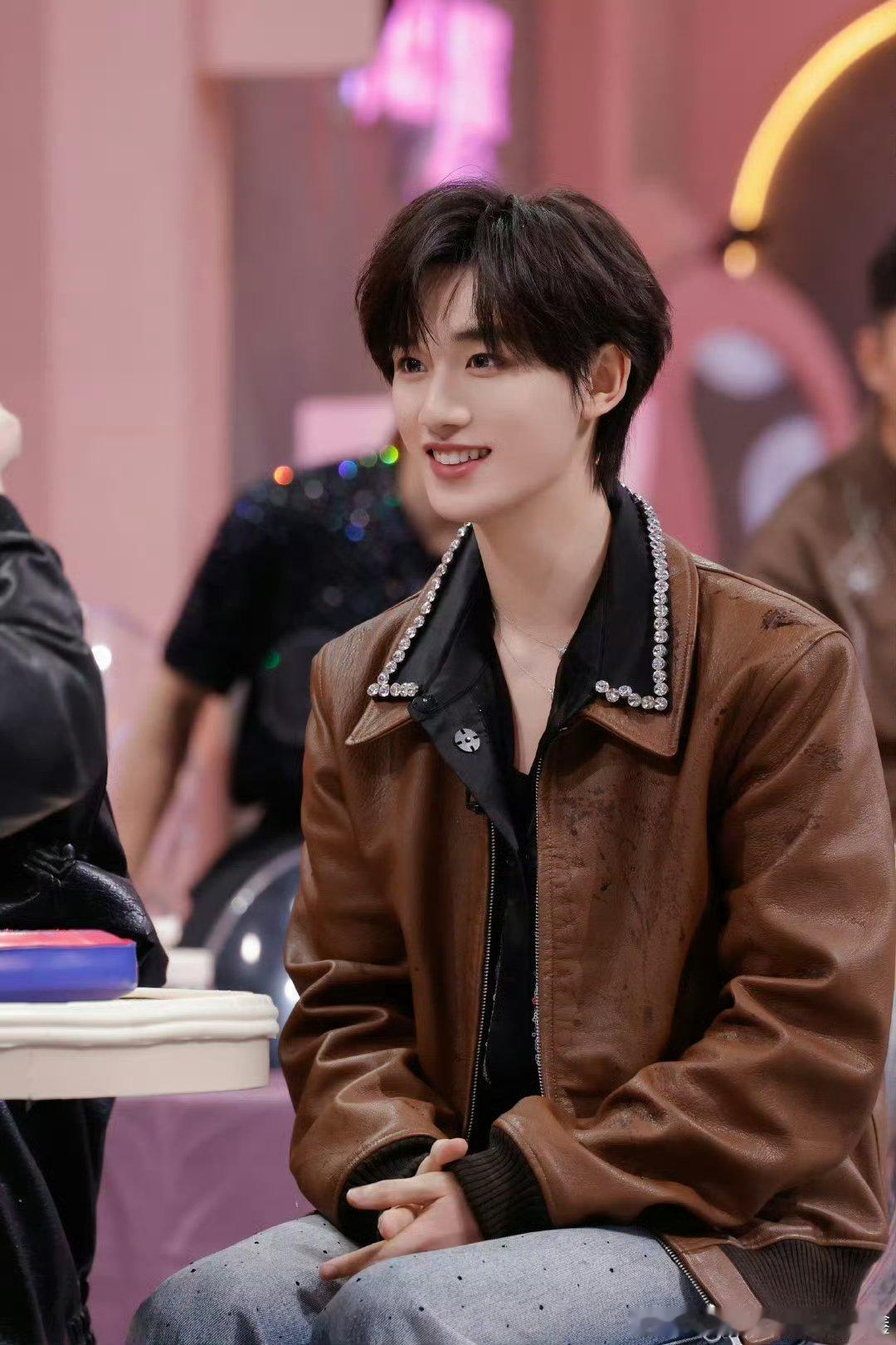 丁程鑫hi6棕色皮衣look 这套棕色皮衣太衬丁程鑫了,奶帅氛围感直接溢出屏幕!你好星期六