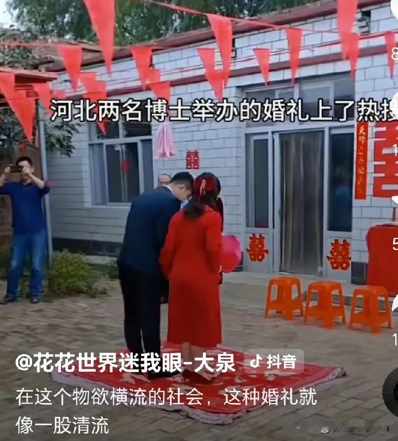 河北这对博士新婚夫妇上了热搜。新郎父母是普通农民,同为博士的湖北姑娘主张办个简易