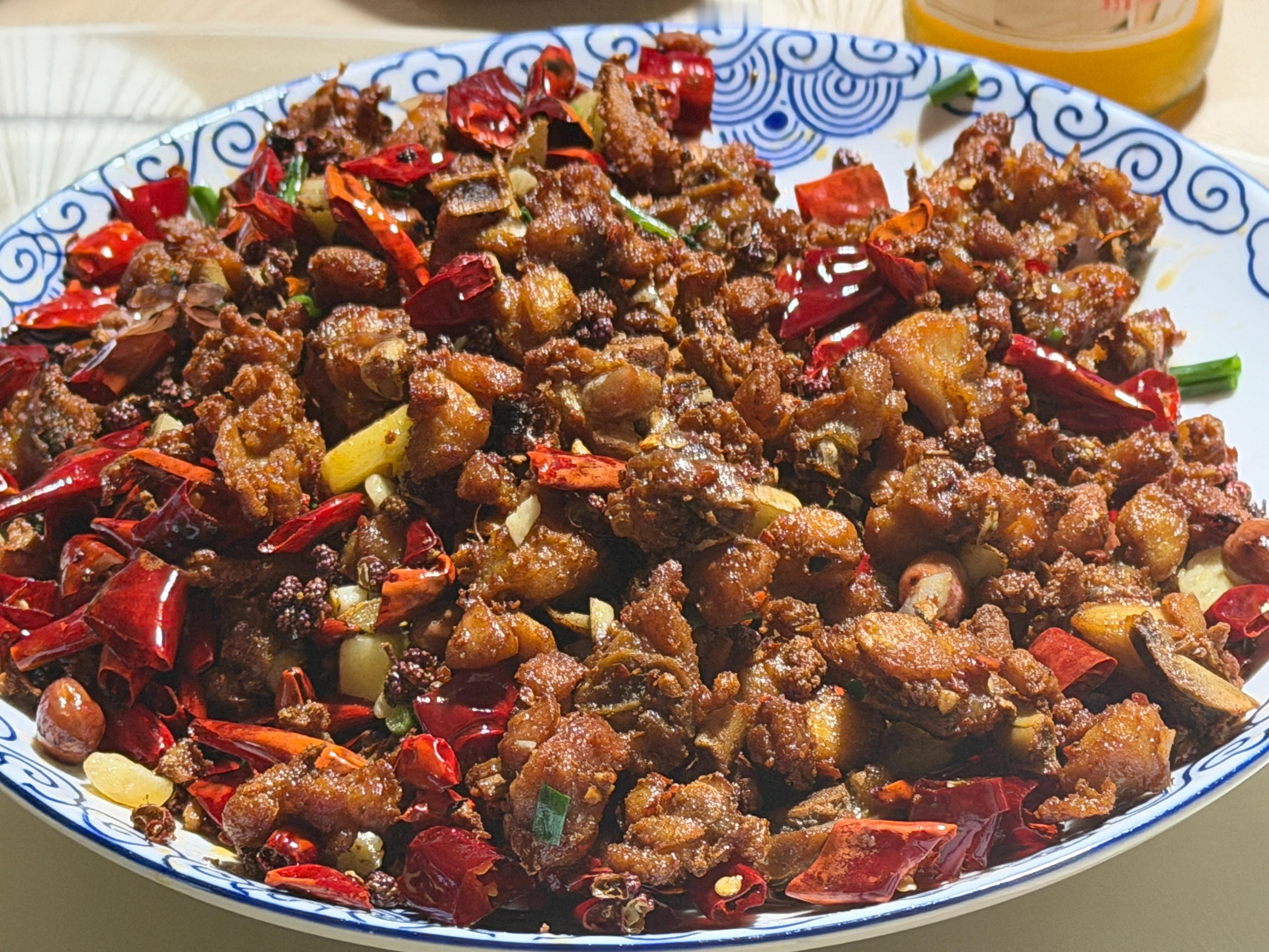 辣子鸡外皮炸的很脆,里面的肉很嫩