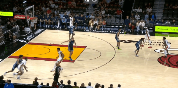 图1突破杀入篮下点起阿尔达马后跳传空切的韦尔。这种杀入篮下吸引对方内线协防注意力后的内传内是鲍威尔本场助攻的主要来源。