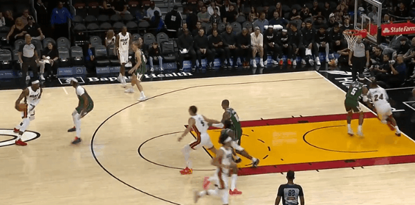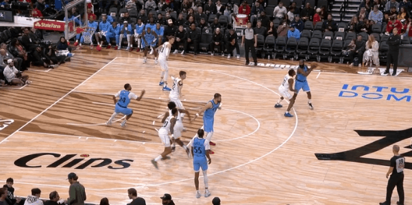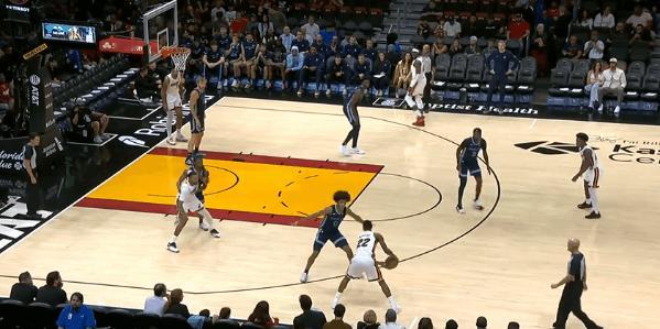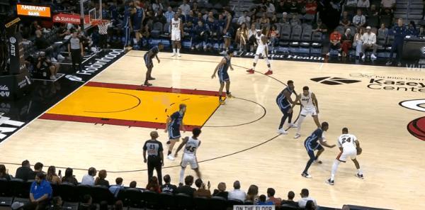 鲍威尔季前赛的比赛内容中,还有一点超出我预期、比较让我惊喜的是:斯波居然会给他设计低位战术(图6,图7)。似乎是有拓展鲍威尔“技能包”的打算。