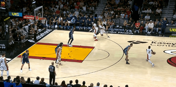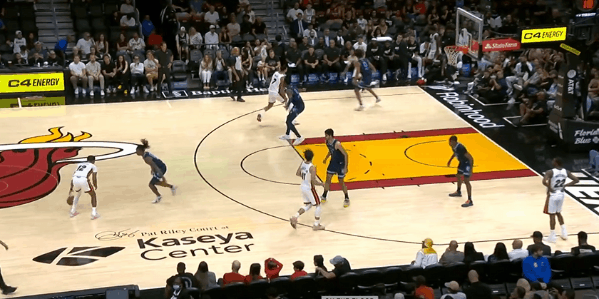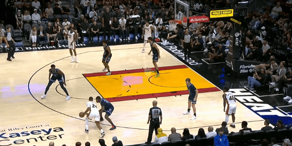 图2借韦尔Pin Down(下掩护)后卷切篮下,吸引JJJ协防后给韦尔送上空接,打穿JJJ身后。