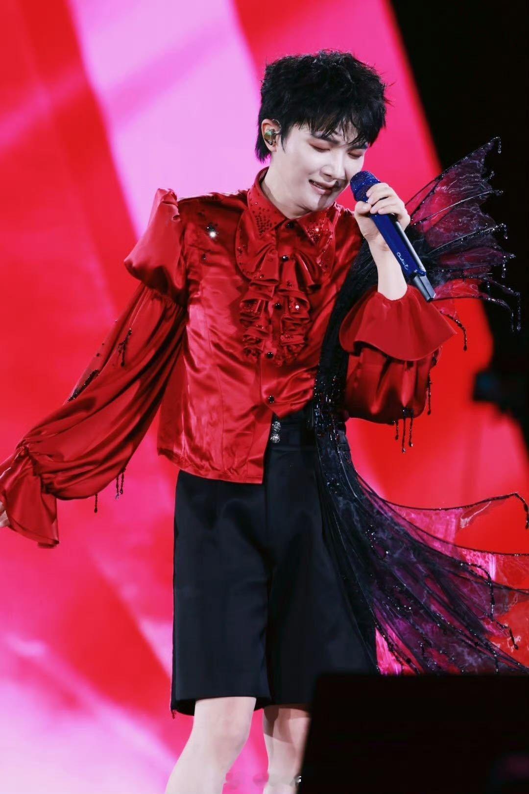 周深凤尾斗鱼造型今晚的舞台造型太绝了!黑色羽翼轻扬,宛若凤尾斗鱼游弋在光影之间
