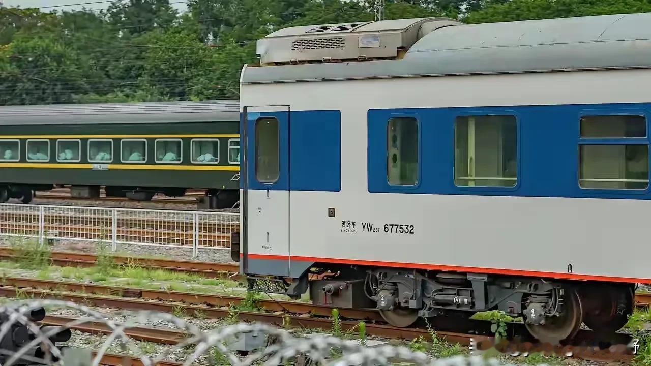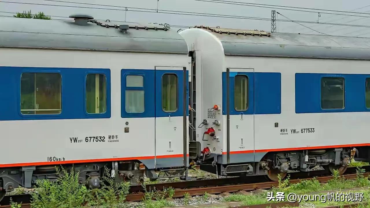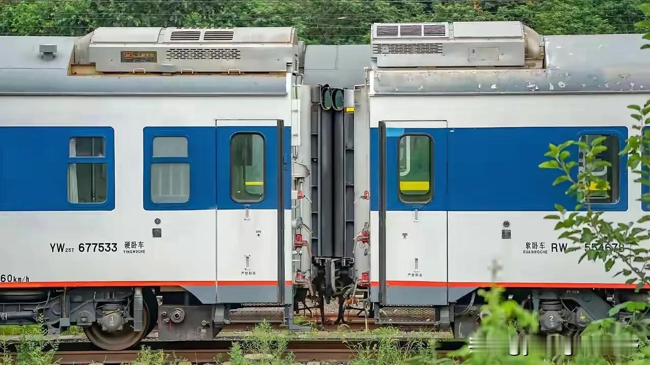 国产25T型铁路客车,目前主要用于普速列车中的Z字头直达特快,目前看起来墨绿色的车身与其他车貌似并没有什么两样。其实在原色时代,也就是客车刷绿之前,这款车是白色的车身配上蓝色的车窗色带,这种色彩搭配起来让这款车还挺显高级感的。由那时的最好的机车牵引起来,在铁路干线上跑160公里的时速,气势十足!