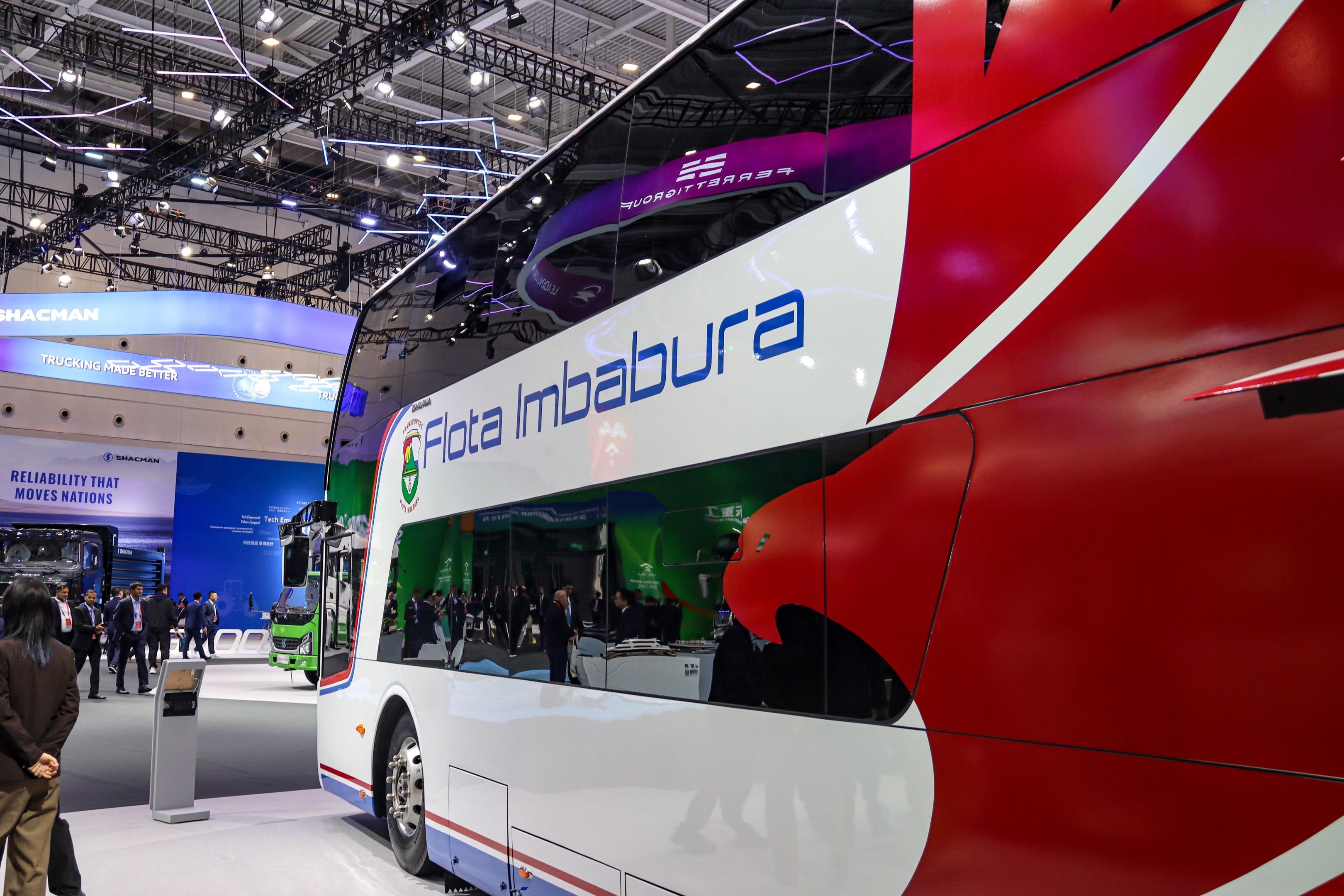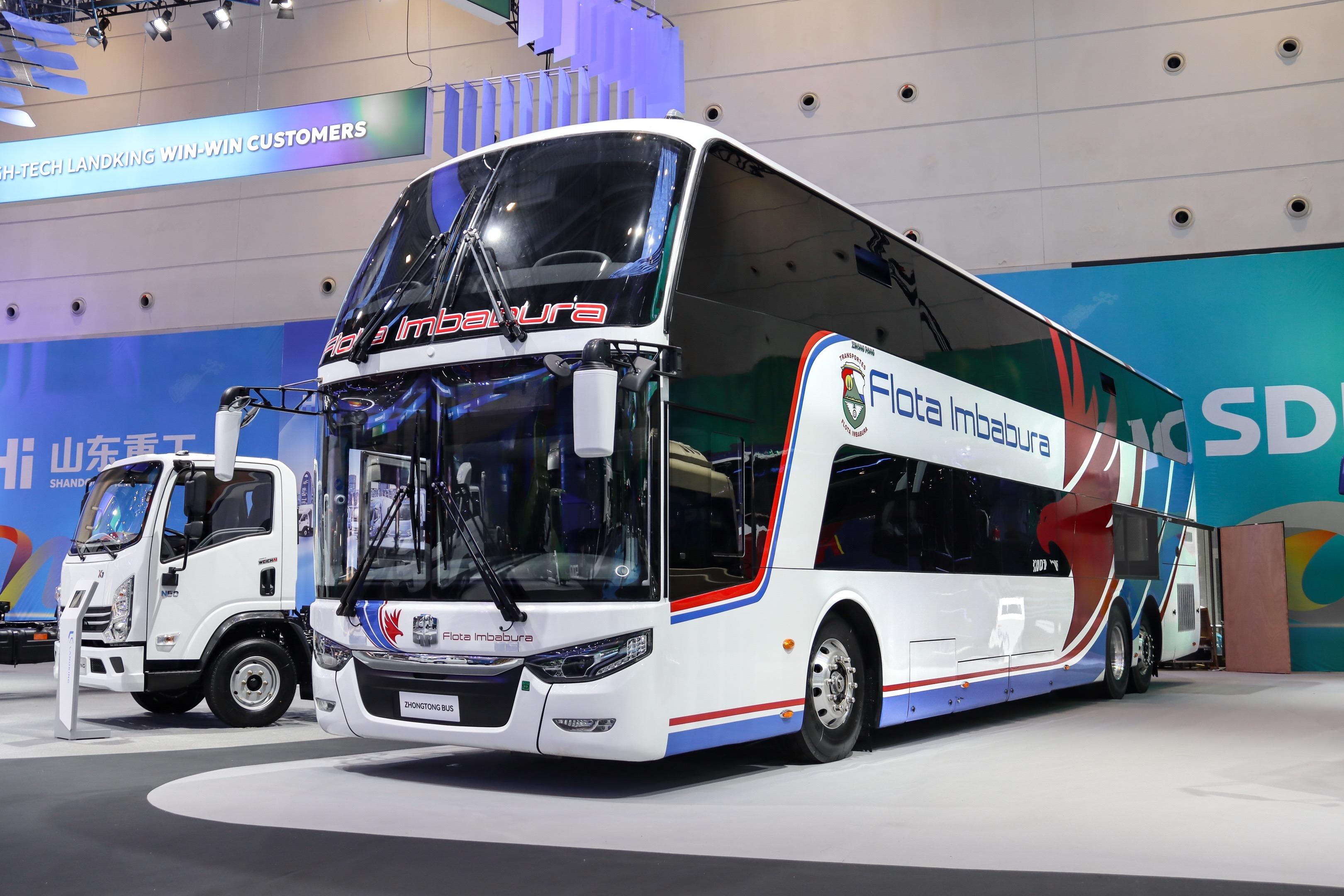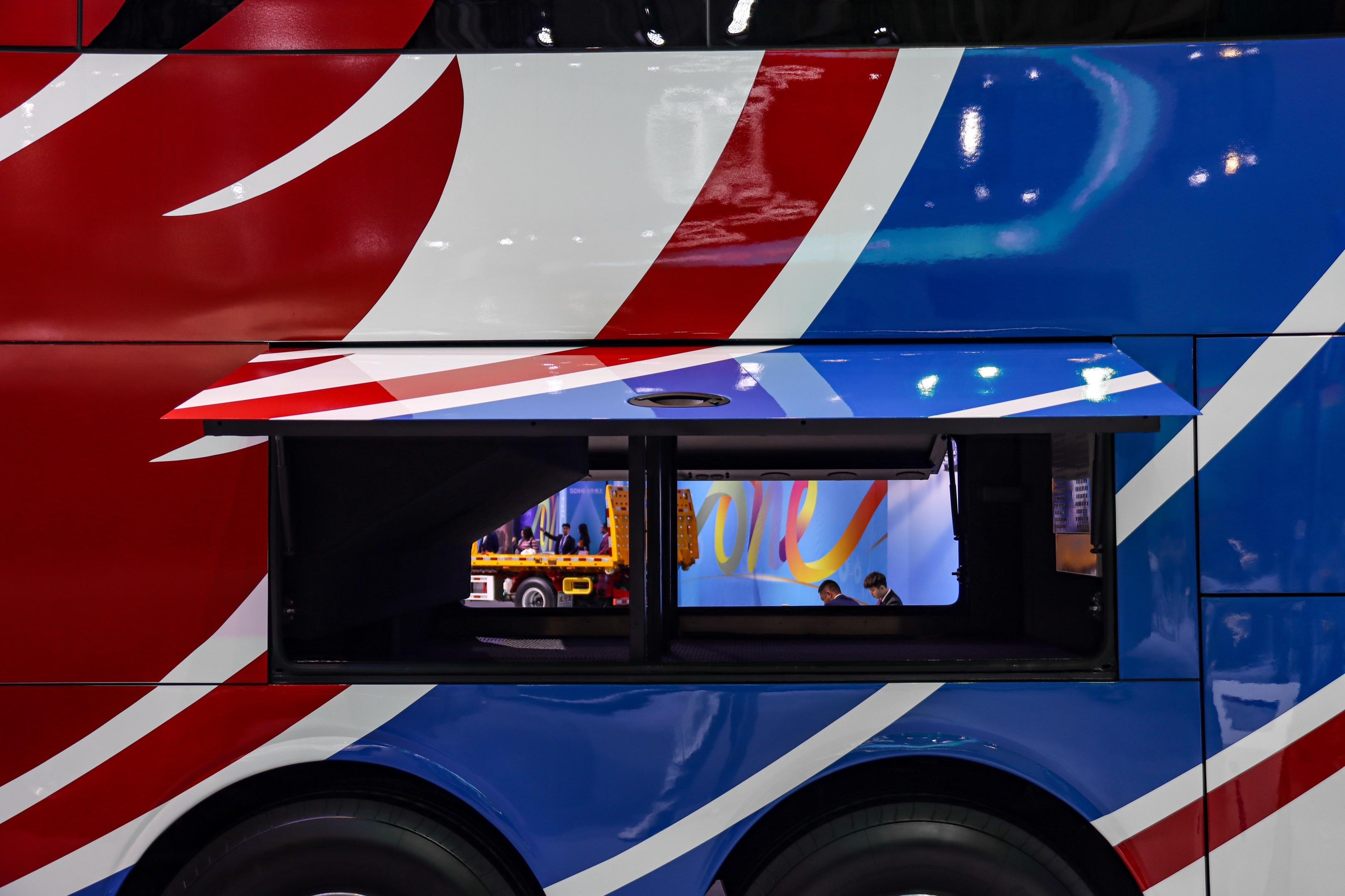 潍柴全球合作伙伴大会上的中通世嘉双层客车!久违的大双层!受国内政策限...