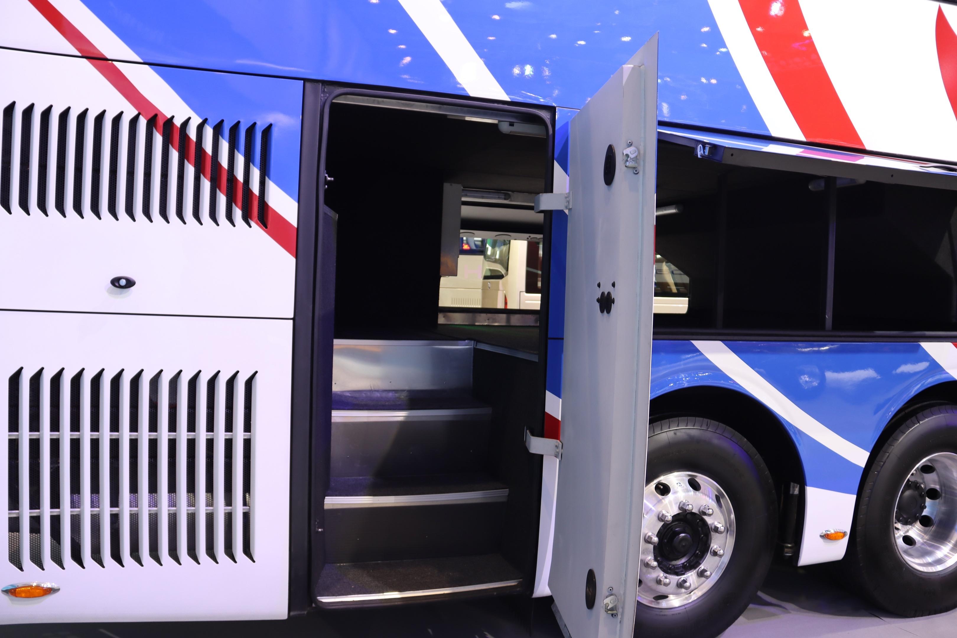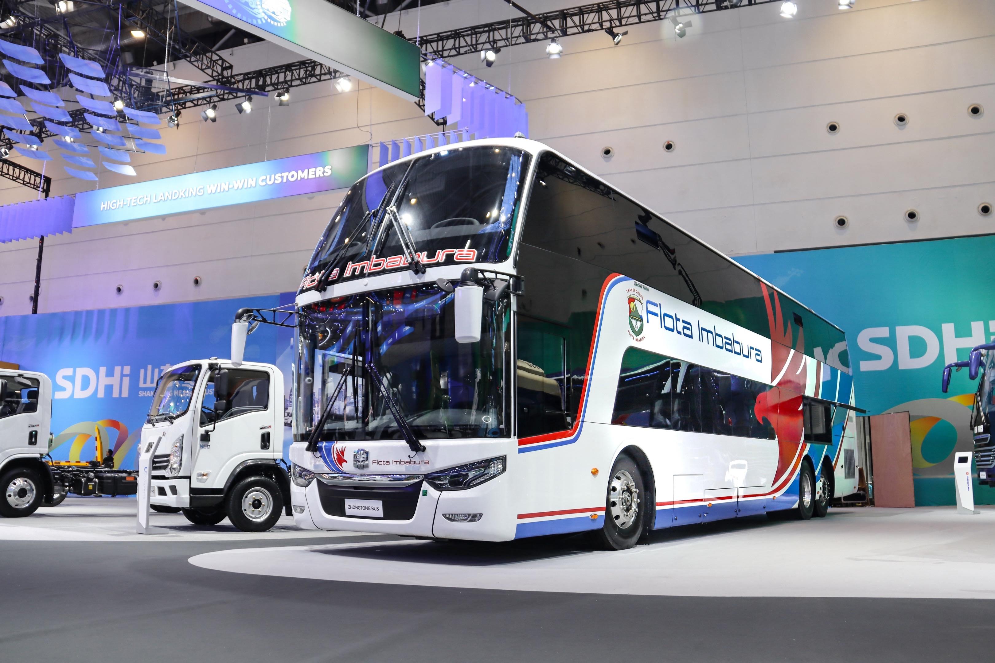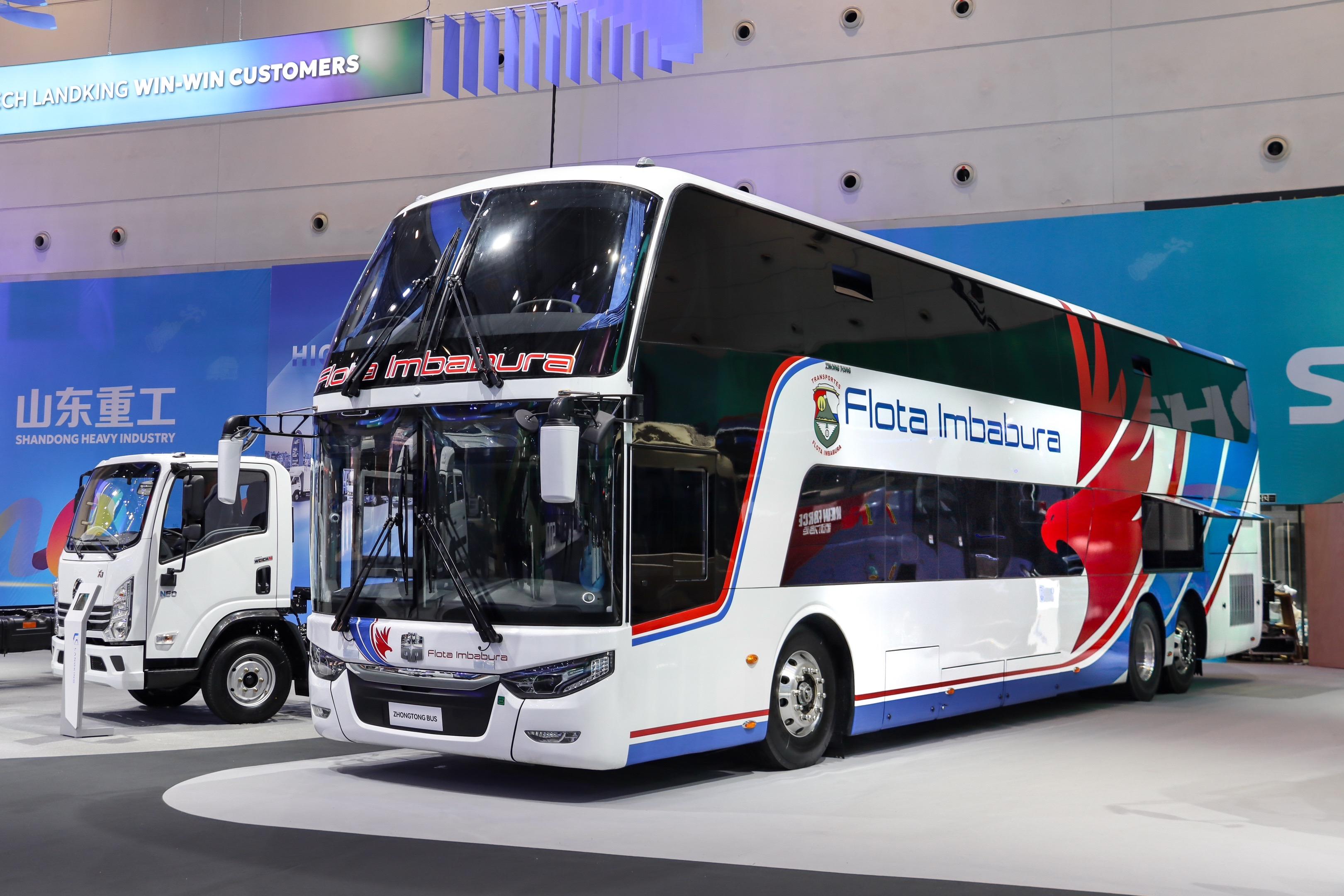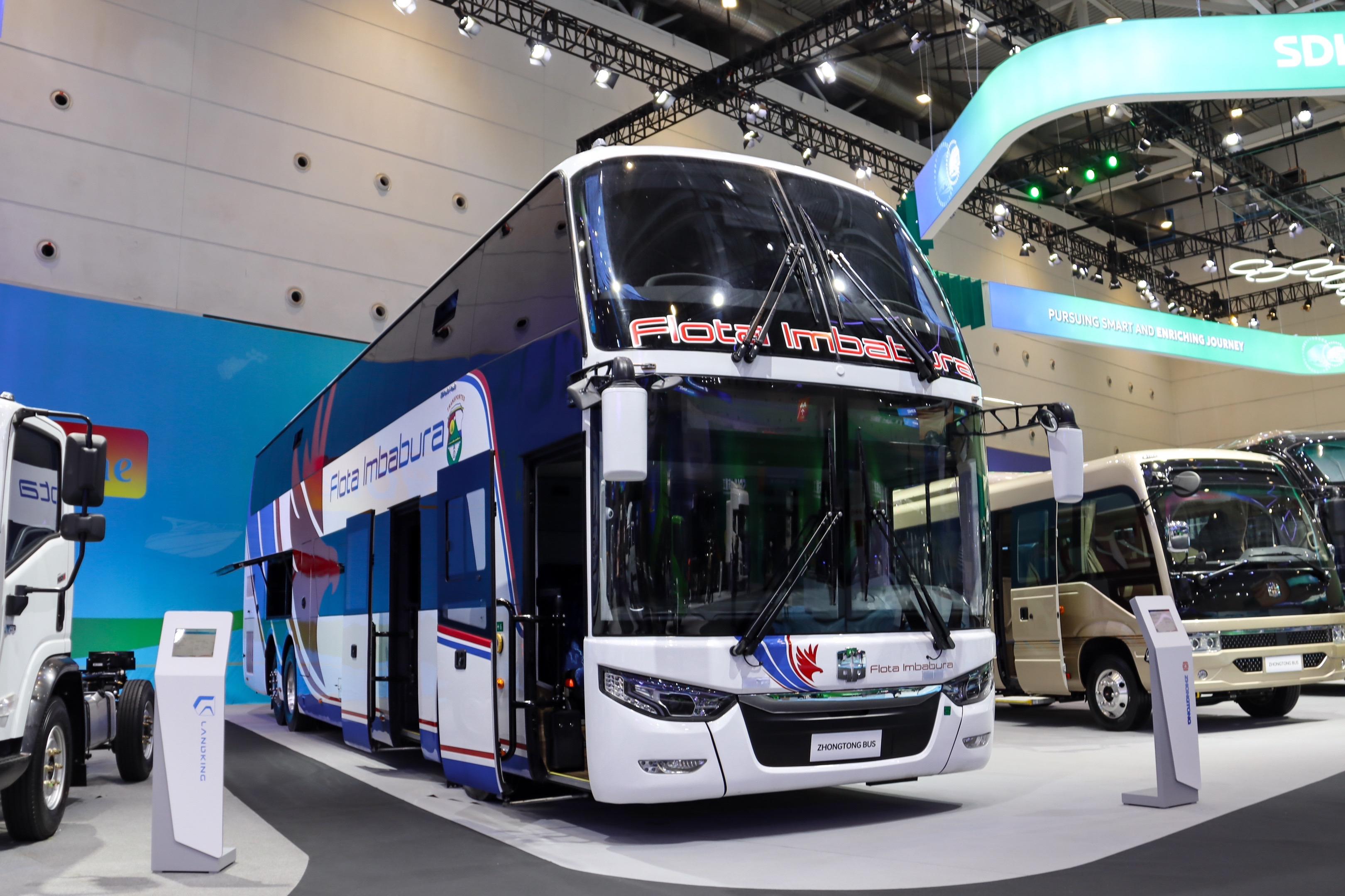 潍柴全球合作伙伴大会上的中通世嘉双层客车!久违的大双层!受国内政策限...