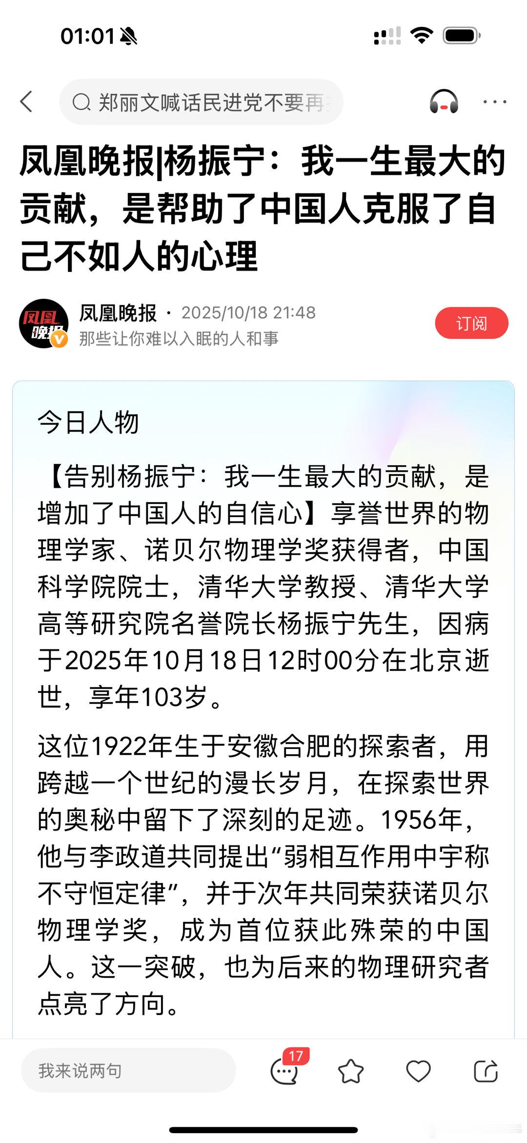 杨振宁先生不但让中国人知道了自己也可以获得诺贝尔奖,而且他的杨-米尔斯方程直接影响了之后十几个诺贝尔物理奖的发现。极大的增强了民族自信心。[good]